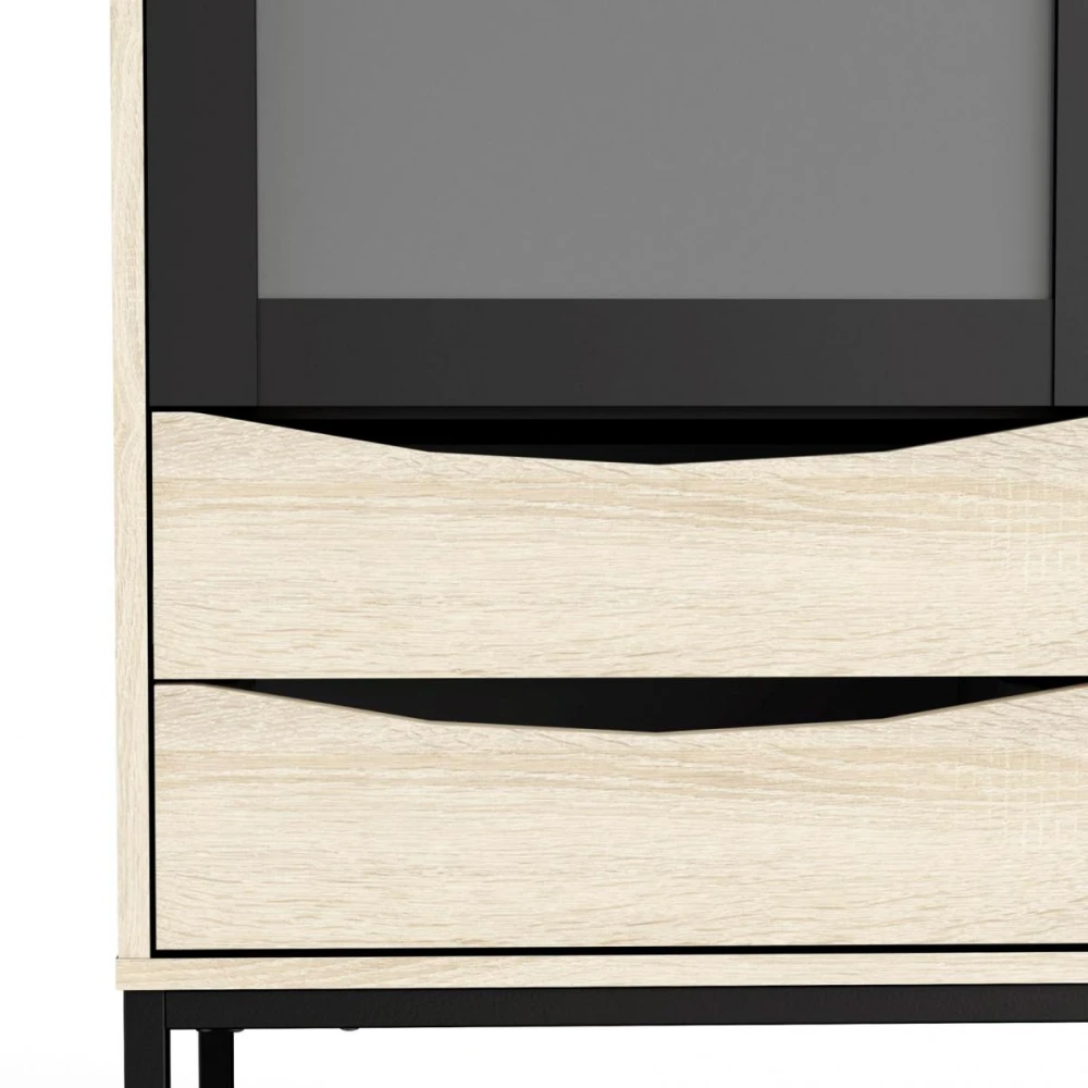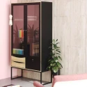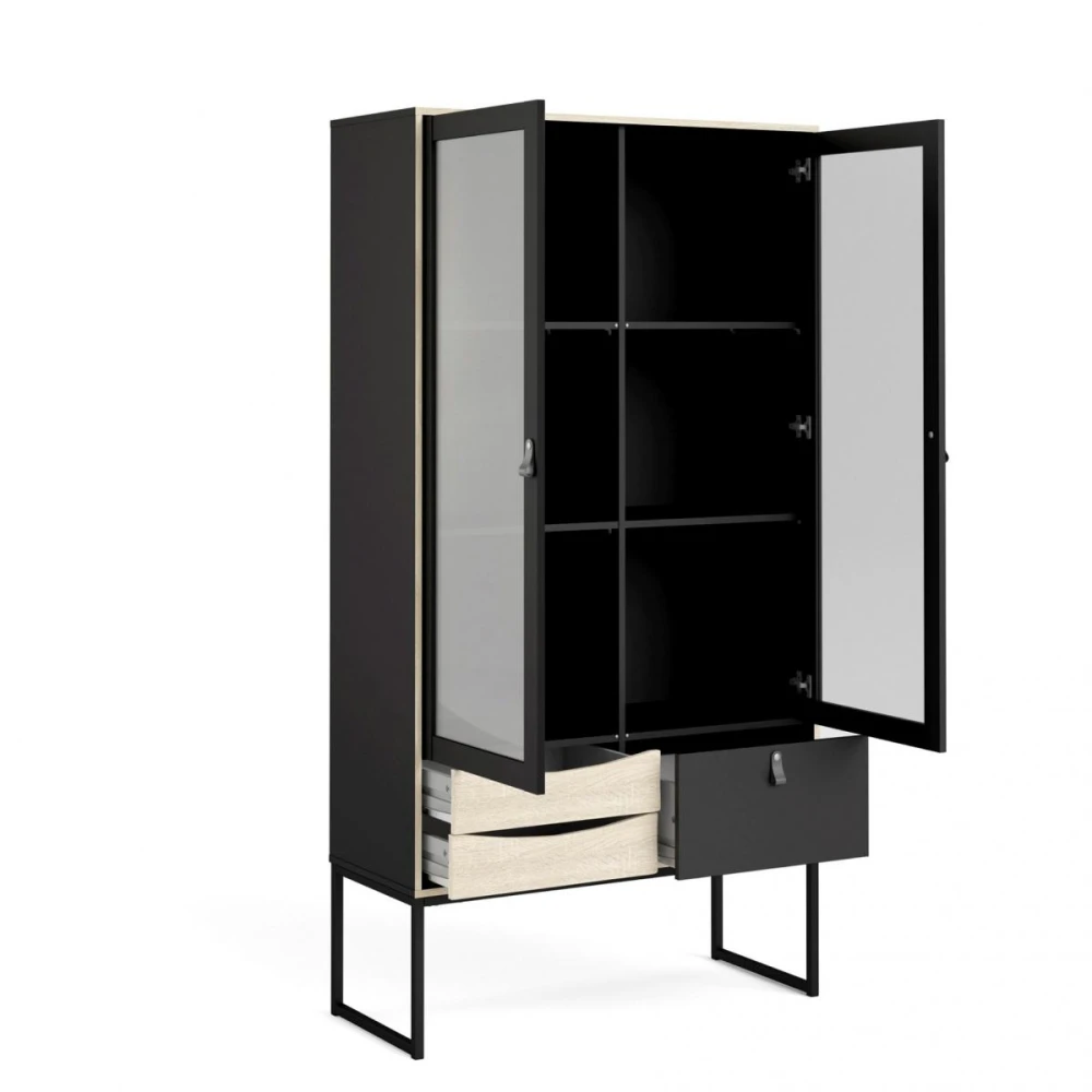 Vitrína Sheba je moderní nábytek v industriálním stylu se surovým designem. Nabízí spoustu možností využití a je skvělou variantou k rozšíření úložného prostoru ve vašem bytě. Je zhotovena z odolného a snadno udržovatelného lamina, kovové nohy dodají vzdušnost. Sortiment této série obsahuje také TV stolek, konferenční stolek a komody.