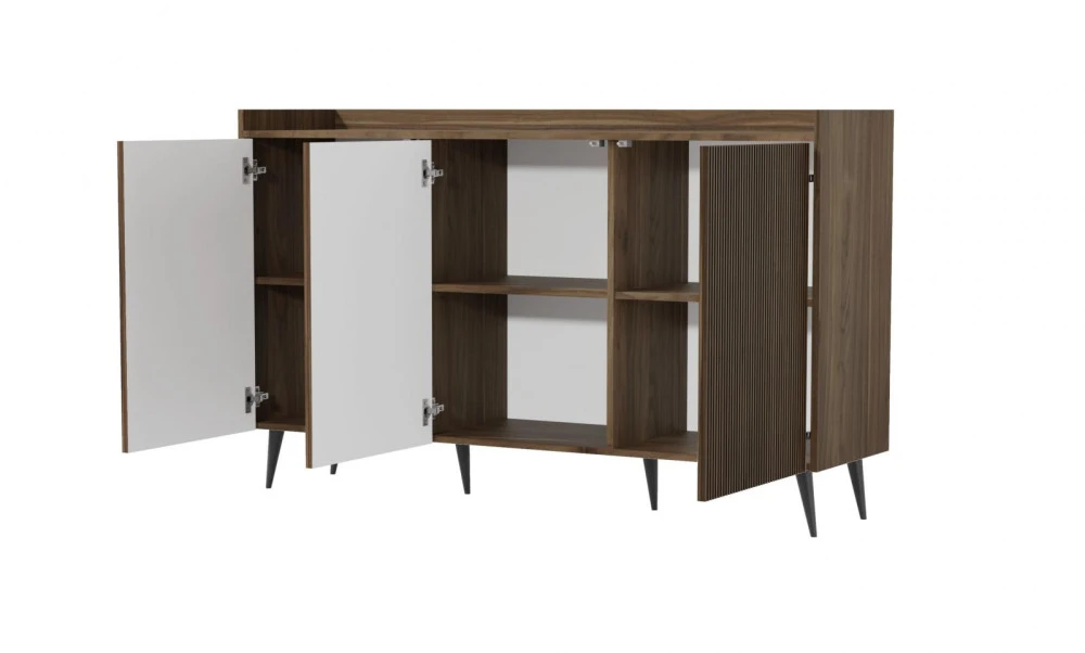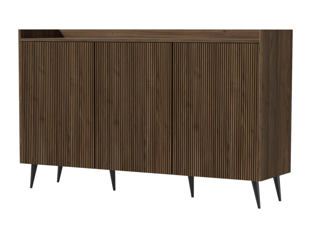 Série nábytku Adleta vyniká elegantním stylem, originalitou a vysokou funkčností. Charakteristickým prvkem jsou drážkovaná dvířka, která v kombinaci s teplým odstínem ořechového dekoru vytvářejí moderní a zároveň nadčasový vzhled. Díky tomu se nábytek skvěle hodí do různých interiérových stylů – od moderních až po klasické.