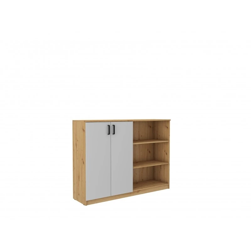 Vysoká komoda Matylda 850 s dvířky a policemi je vyrobena z lamina v provedení světle šedá a dub artisan. Komoda je velmi praktická a pojme vše potřebné. Je dodávána v demontu. Součástí balení je montážní návod včetně všech spojovacích prvků.