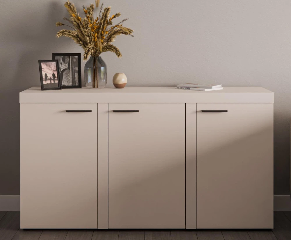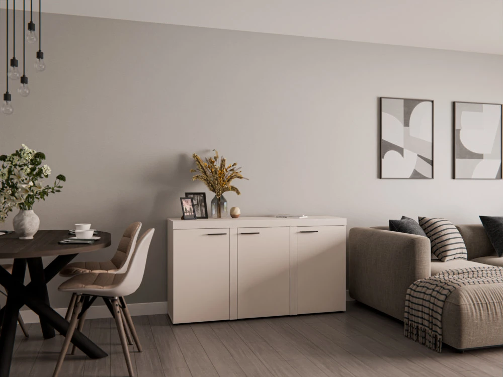 Komoda Rizo je nejen skvělým doplňkem k bytové stěně Rizo. Stejně výborně poslouží jako samostatný kus nábytku. Komoda má univerzální využití a nabízí dostatek úložného prostoru. Komoda je vyrobena z odolného a stálobarevného lamina. Komoda je dodávaná v demontu. Součástí balení je schematický montážní návod, včetně všech potřebných spojovacích prvků. Vyobrazené doplňky a dekorace nejsou v ceně.