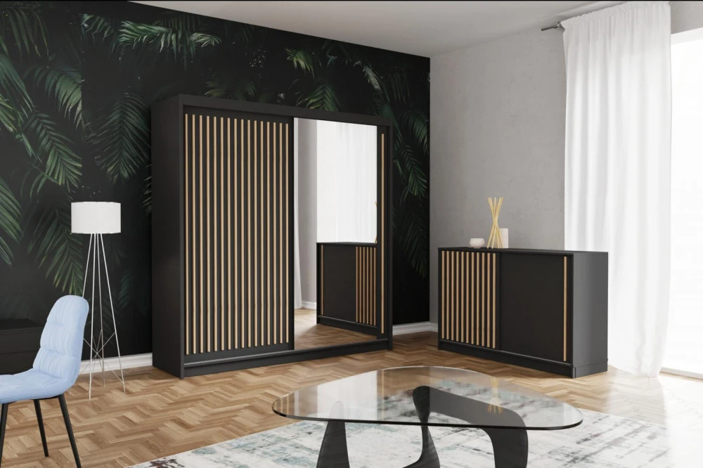 Komoda Rony je nejen skvělým doplňkem ke skříni Rony. Stejně výborně poslouží jako samostatný kus nábytku. Moderní a atraktivní vzhled komodě dodávají lamely v dekoru dub wotan. Komoda má univerzální využití a nabízí dostatek úložného prostoru. Komoda je vyrobena z odolného a stálobarevného lamina. Komoda je dodávaná v demontu. Součástí balení je schématický montážní návod, včetně všech potřebných spojovacích prvků. Vyobrazené doplňky a dekorace nejsou v ceně.