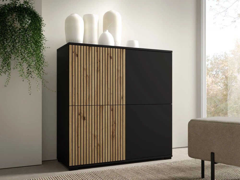 přináší stylový kontras. Uvnitř komody najdete šest polic pro rozmanité předměty.