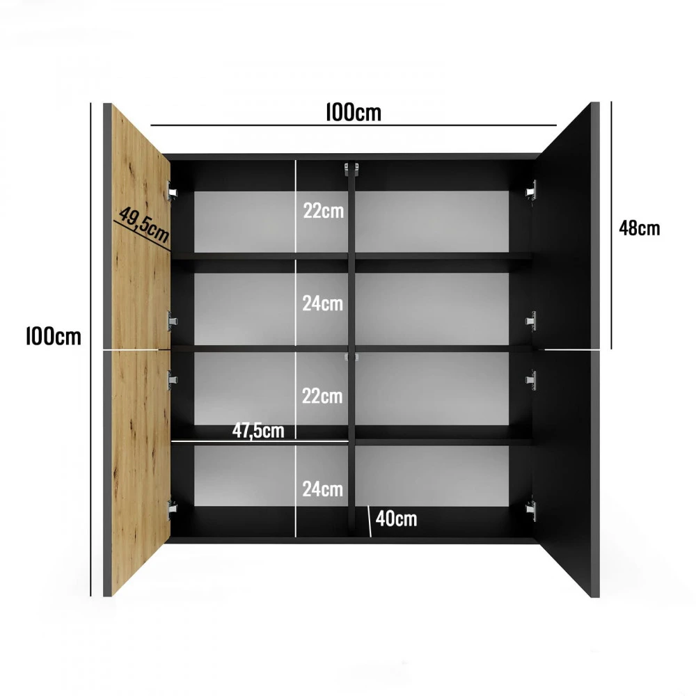 Sestava v elegantní černé barvě s dekorem dubu artisan spojuje moderní design.