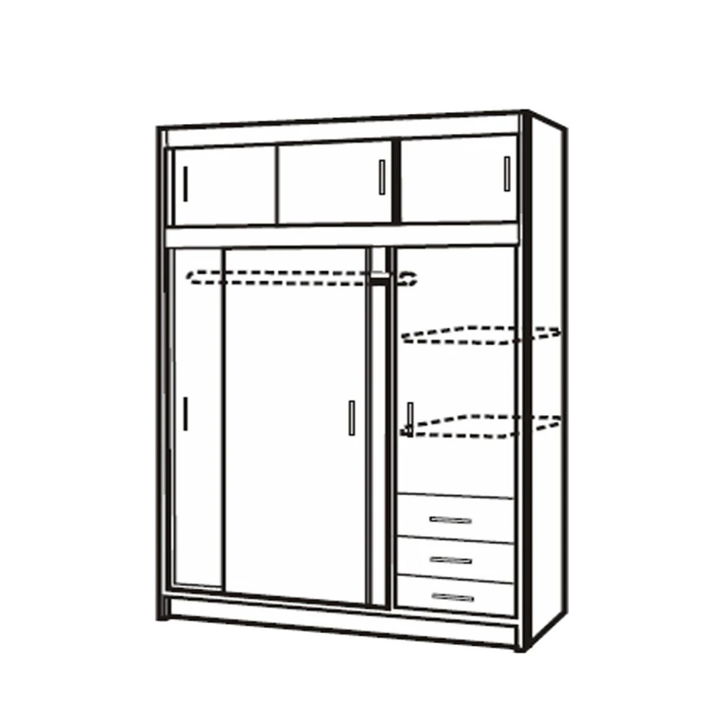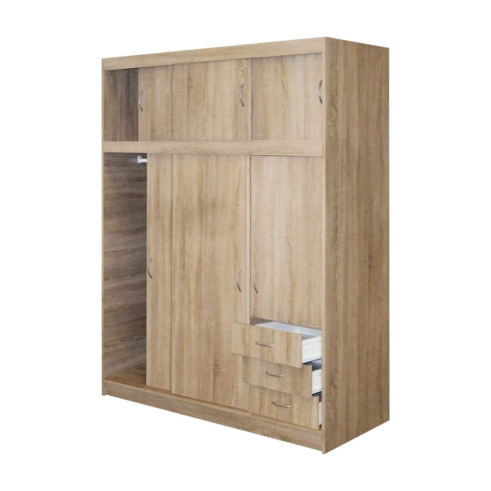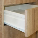 barevné provedení dub Sonoma posuvné dveře, cena včetně nástavce, prostor dělený v poměru 2:1 širší část šatní tyč, užší část 2 variabilní police, 3 zásuvky s kovovými pojezdy barevné varianty: 3000A buk, 3000B bílá