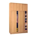 barevné provedení buk prostor dělený v poměru 2:1, posuvné dveře širší část šatní tyč, užší část 3 variabilní police doporučený nástavec 3223A