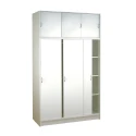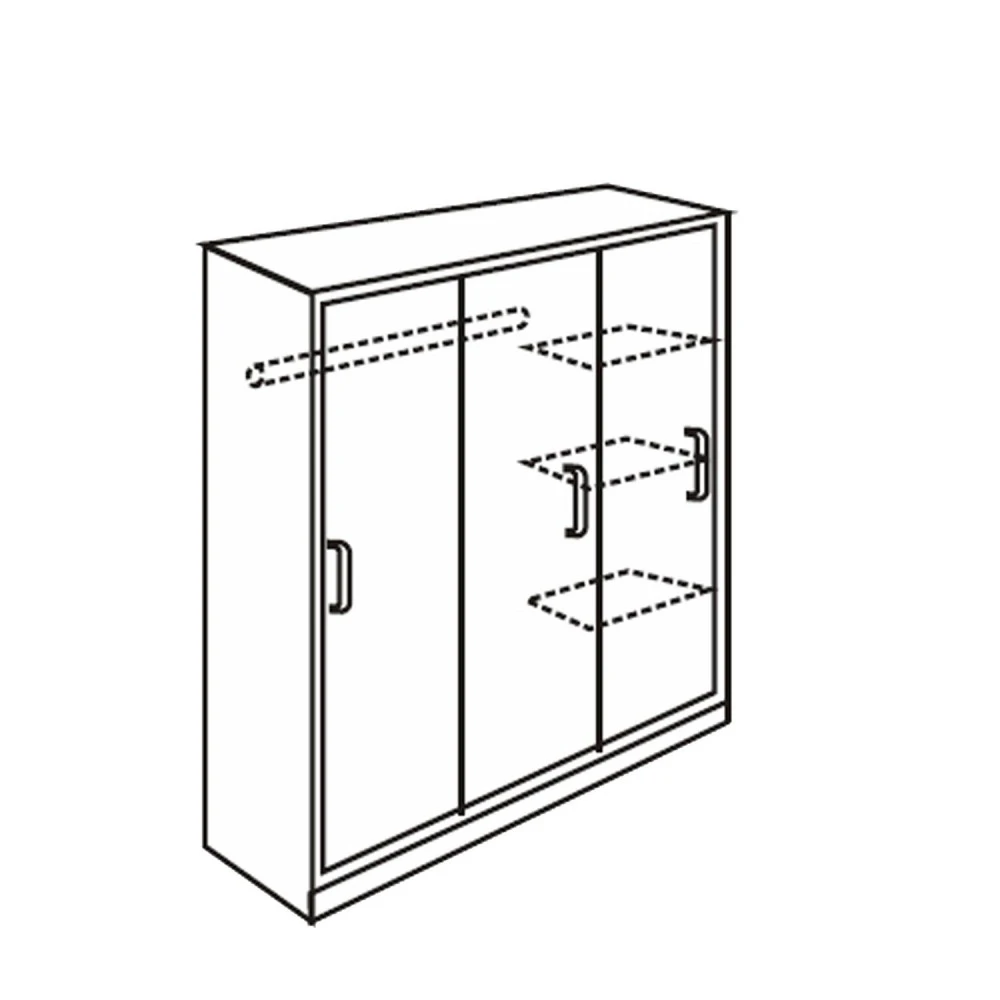 barevné provedení bílá prostor dělený v poměru 2:1, posuvné dveře širší část šatní tyč, užší část 3 variabilní police doporučený nástavec 3223B