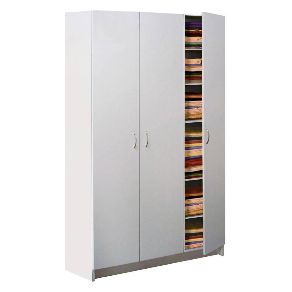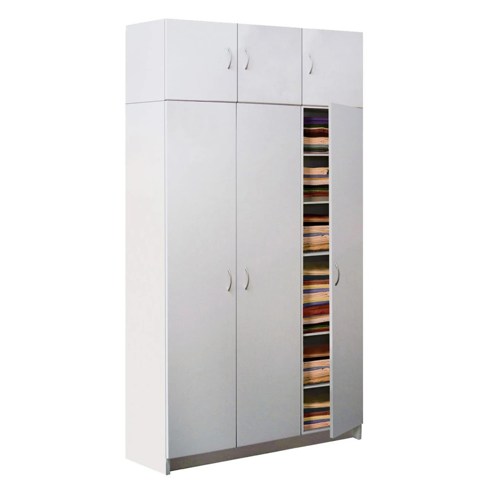 barevné provedení bílá prostor dělený v poměru 2:1 širší část šatní tyč a police, užší část 5 variabilních polic doporučený nástavec 317B