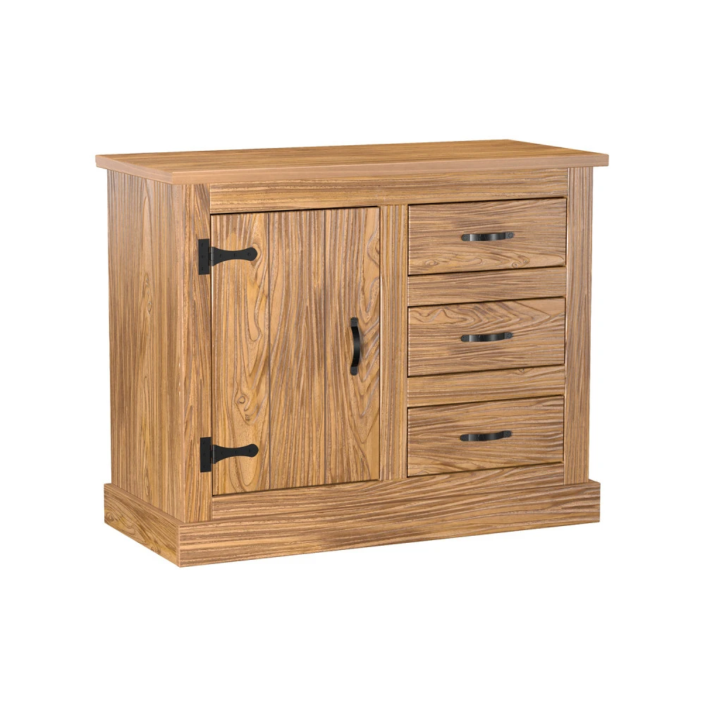 materiál masiv borovice, barevné provedení dub antik lakováno čirým lakem, vlis dřevěné struktury 1 dvířka, 1 police, 3 zásuvky součást sestavy EL DORADO