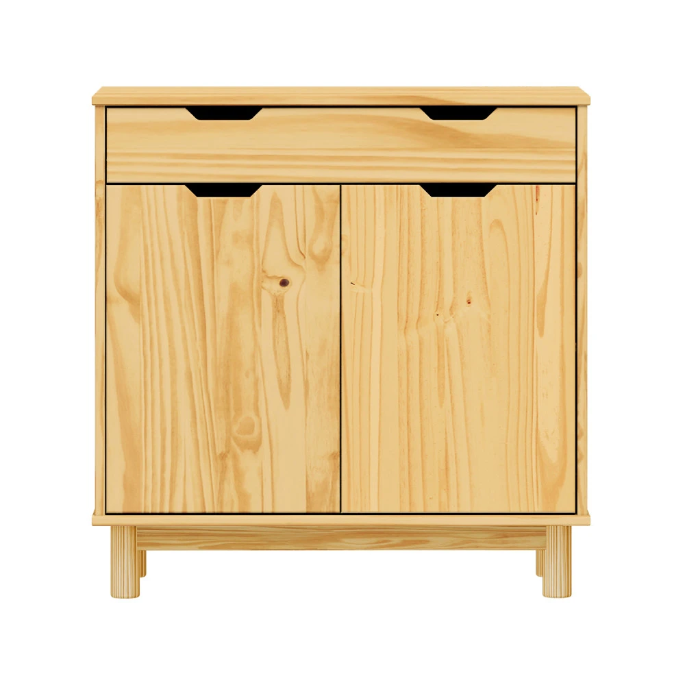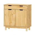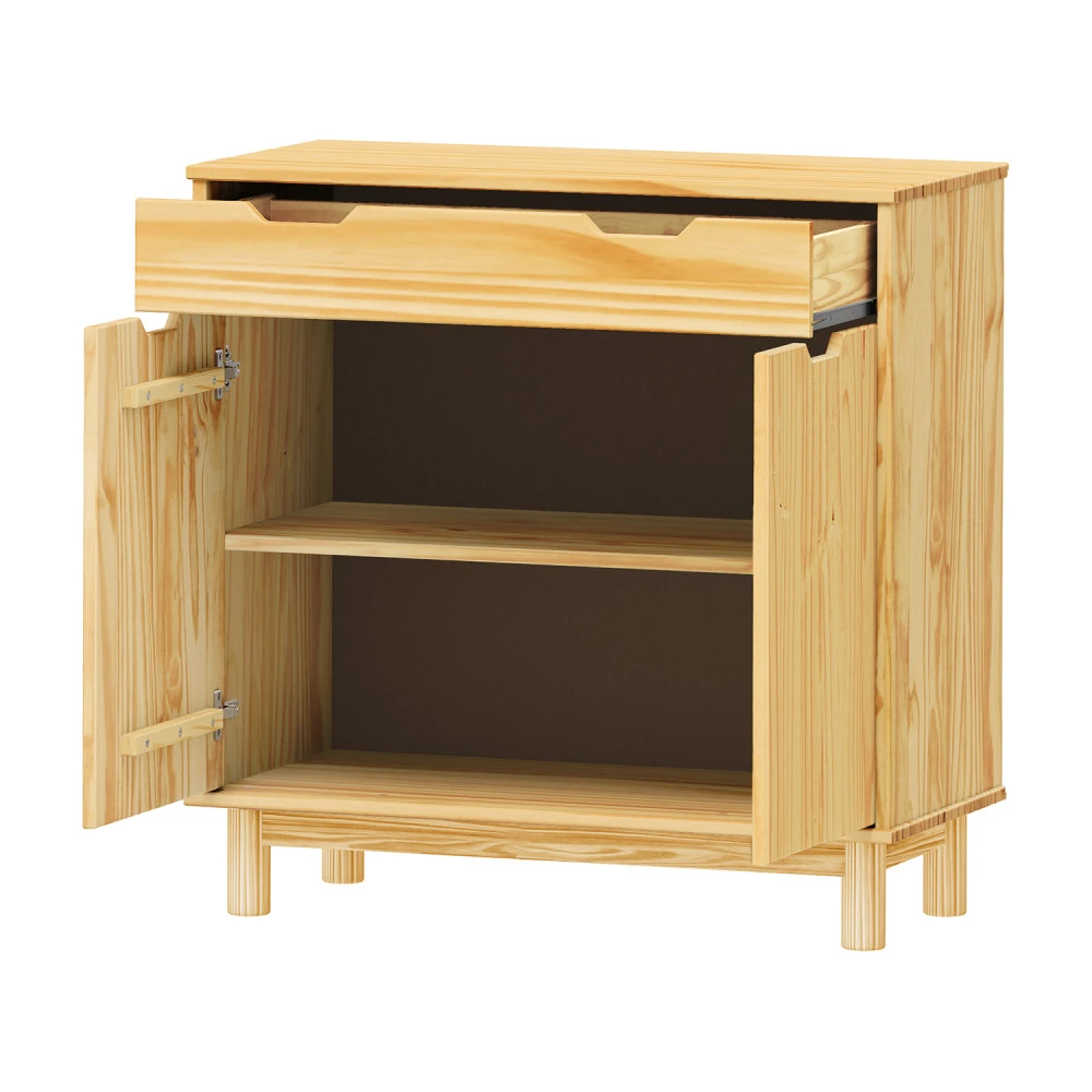 materiál masiv borovice, lakované provedení 1 zásuvka s kovovými pojezdy, 2 dvířka, 1 police