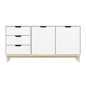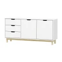 materiál masiv borovice, barevné provedení bílý lak 3 zásuvky s kovovými pojezdy, 2 dvířka, 1 police