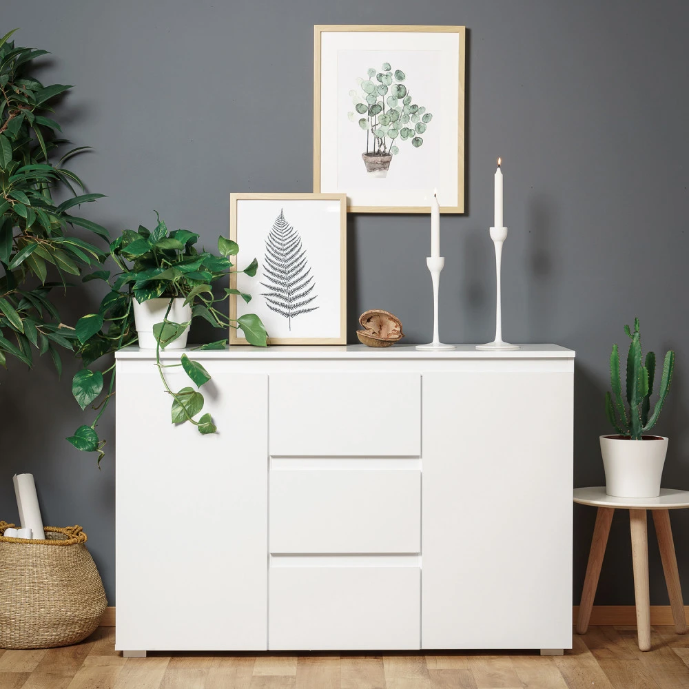 barevné provedení bílá 2 dveře, 2 police, 3 zásuvky s kovovými pojezdy