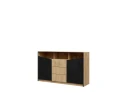 Komoda Asim R3 v provedení dubu v kombinaci s černou barvou je vyrobena z kvalitního lamina. Lamino je odolné a jistě oceníte jeho snadnou údržbu. Komoda je dodána v demontu. Součástí balení je montážní návod včetně všech spojovacích prvků.