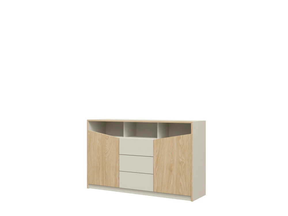 Komoda Asim R3 v provedení dubu v kombinaci s šedobéžovou barvou je vyrobena z kvalitního lamina. Lamino je odolné a jistě oceníte jeho snadnou údržbu. Komoda je dodána v demontu. Součástí balení je montážní návod včetně všech spojovacích prvků.