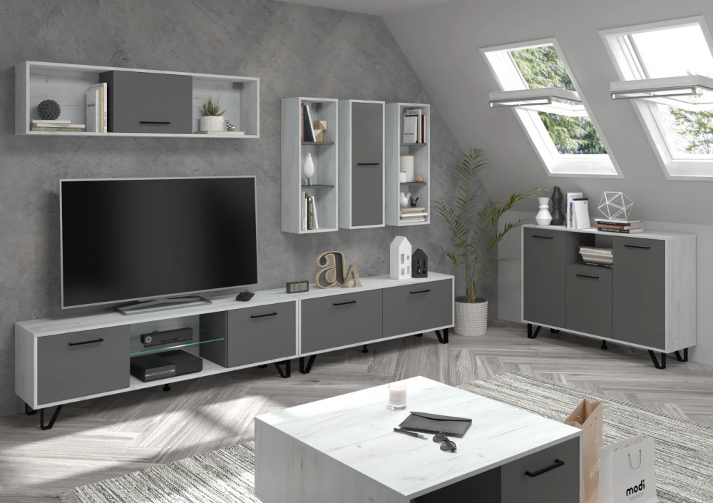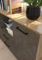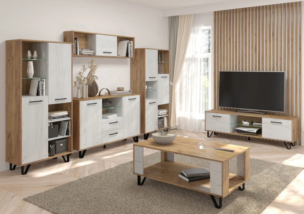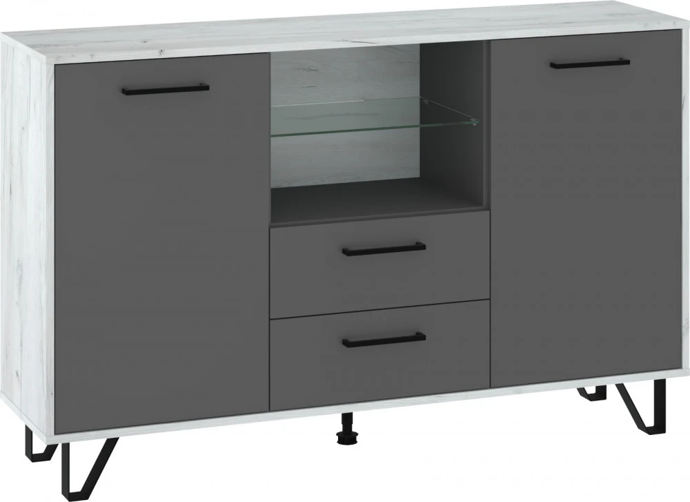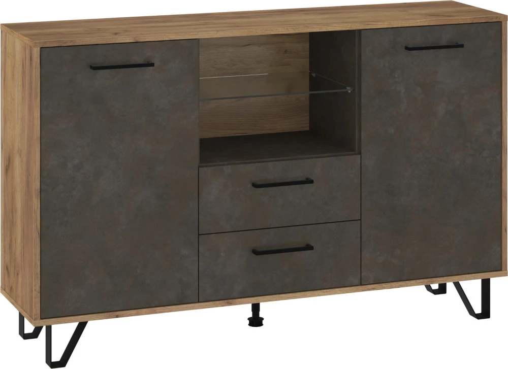 Komoda Boss vás zaujme svým moderním elegantním designem a barevným provedením s přírodními detaily. Je vyrobena z kvalitních lamino desek o síle 16 mm. Desky mají ABS hranění, které zvyšuje odolnost pro odštípnutí hran. Součástí zásuvek a dvířek jsou jednoduché kovové úchyty a zároveň mají zabudovaný systém tichého dovírání. Nábytek stojí na kovových nožkách, které provzdušní váš interiér. Nabízíme vám několik barevných variant.Součástí komody jsou 2 dvířka, za kterými jsou vloženy 4 lakované police. Mezi dvířky jsou 2 zásuvky na kovových pojezdech a nad nimi je skleněná police k vystavení vašich oblíbených dekorací, knih nebo rámečků s fotografiemi.Doporučujeme si vybrat z dalších komodit systému Boss, ze kterých si vytvoříte svůj vysněný obývací pokoj, relaxační místnost či pracovnu.Nábytek dodáváme v demontu.