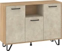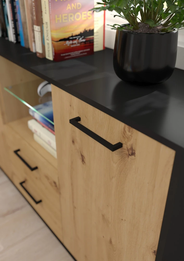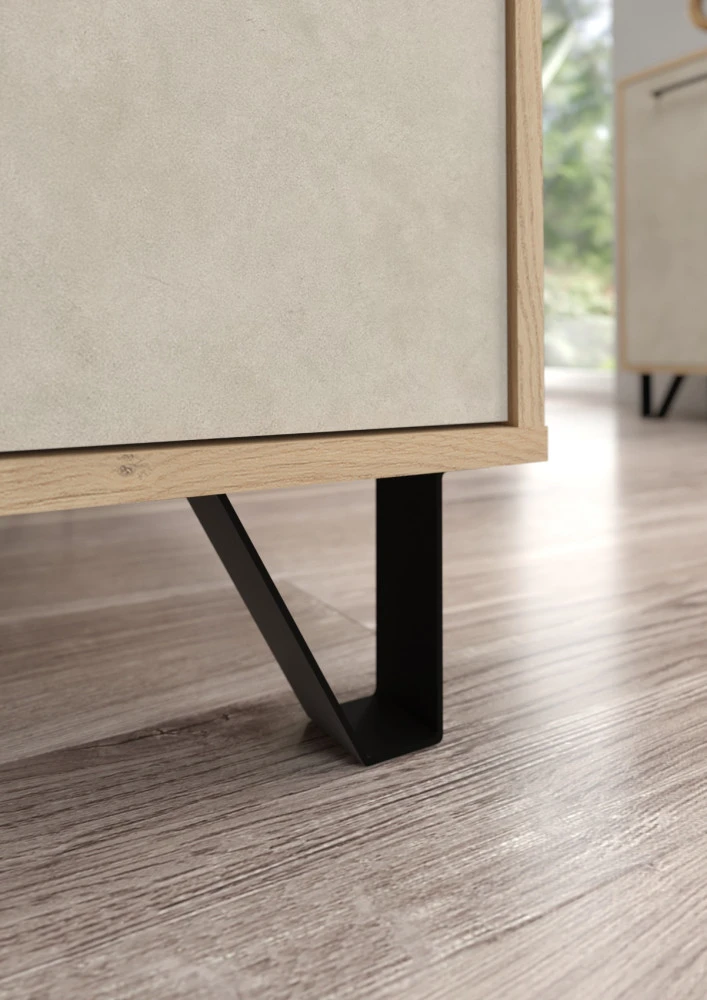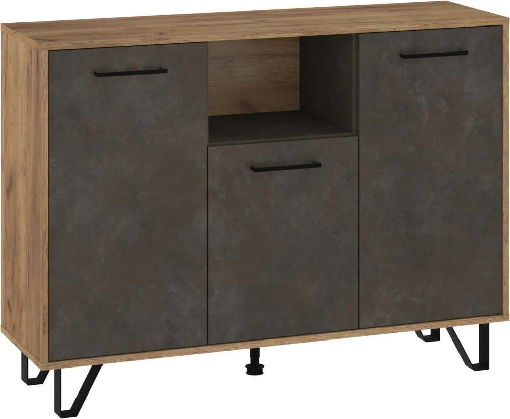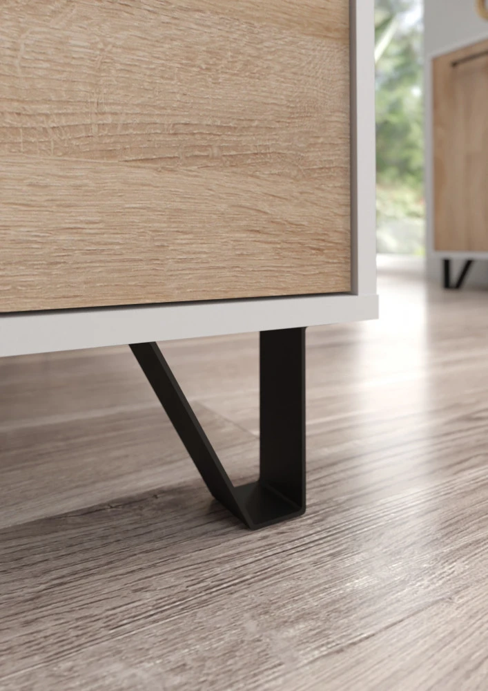 Komoda Boss vás zaujme svým moderním elegantním designem a barevným provedením s přírodními detaily. Je vyrobena z kvalitních lamino desek o síle 16 mm. Desky mají ABS hranění, které zvyšuje odolnost pro odštípnutí hran. Součástí zásuvek a dvířek jsou jednoduché kovové úchyty a zároveň mají zabudovaný systém tichého dovírání. Nábytek stojí na kovových nožkách, které provzdušní váš interiér. Nabízíme vám několik barevných variant.Součástí komody jsou 3 dvířka, za kterými je vloženo 5 lakovaných polic. V horní prostření k vystavení vašich oblíbených dekorací, knih nebo rámečků s fotografiemi.Doporučujeme si vybrat z dalších komodit systému Boss, ze kterých si vytvoříte svůj vysněný obývací pokoj, relaxační místnost či pracovnu.Nábytek dodáváme v demontu.