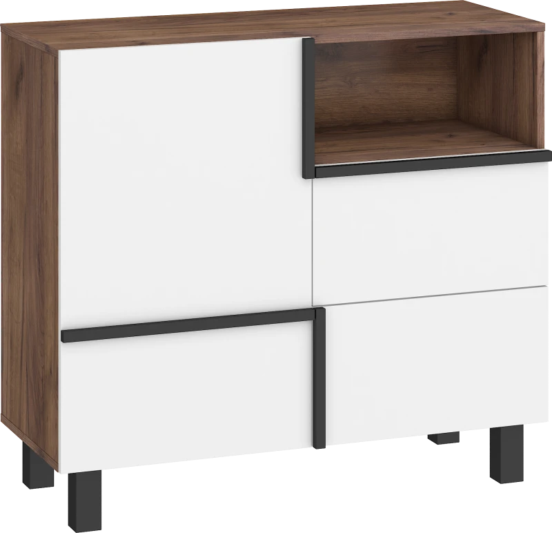 Komoda Lars 01 vyniká vkusným designem a propracovanými detaily. Je vybavená 2 zásuvkami a dvířky. Nad zásuvkou najdete policový prostor, kam si můžete vystavit fotografie nebo třeba suvenýry z dovolené. Komodu vám dodáme v demontu.