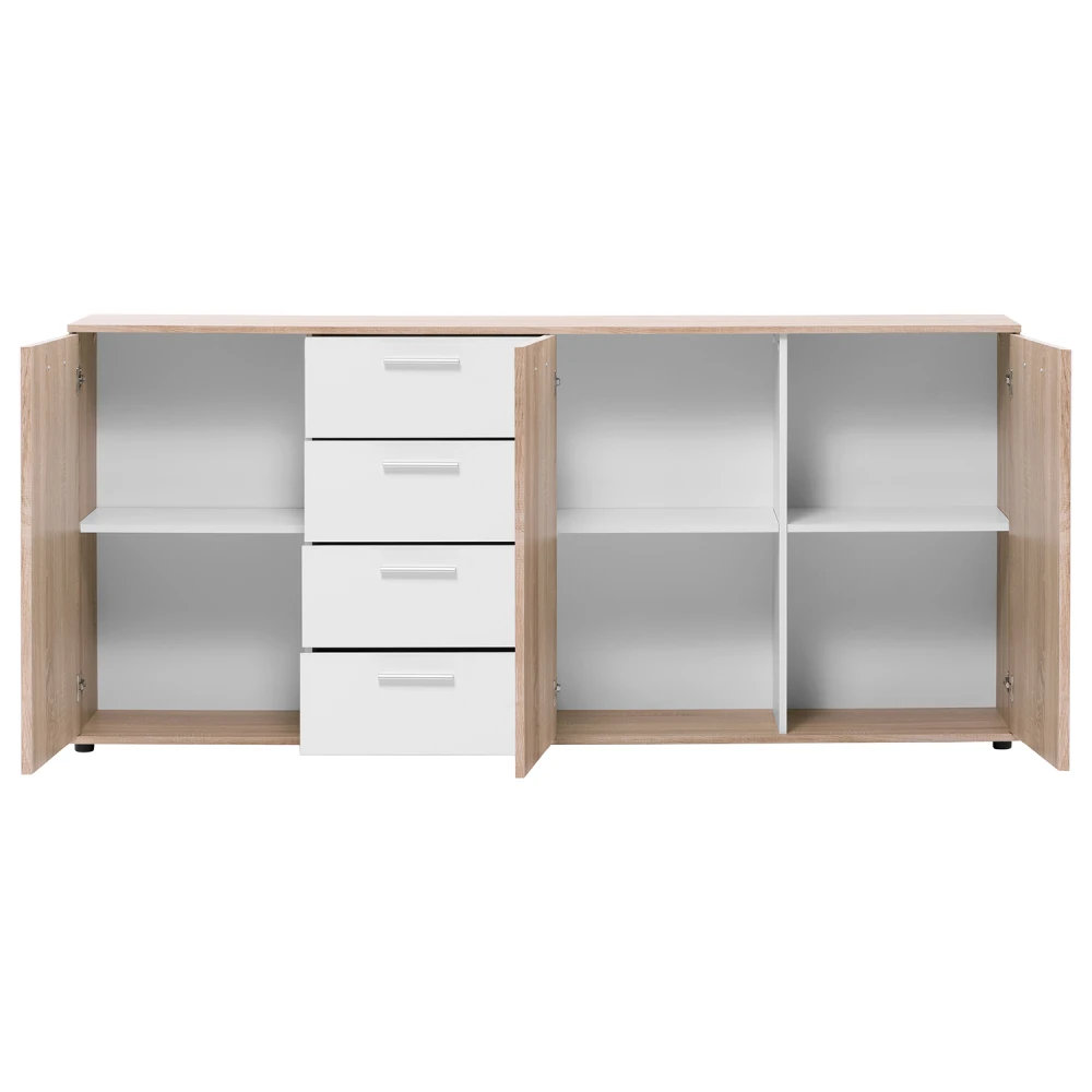 barevné provedení dub Sonoma / bílá 4 zásuvky s kovovými pojezdy 3 dvířka, 3 variabilní police
