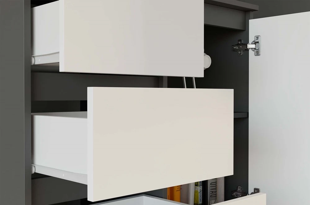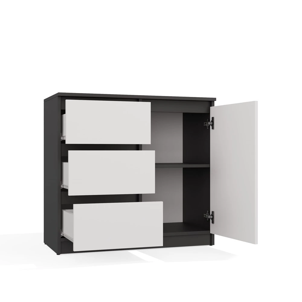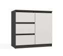 Nadčasová komoda Malvína v minimalistickém designu nabízí díky svému provedení dostatek úložného prostoru a univerzální použití v kterékoliv místnosti vašeho bytu či domu. Bezúchytková čela zásuvek zajistí pohodlné používání a dokreslí moderní a útulný charakter vašeho interiéru. Komoda je vyrobena ze snadno udržovatelného lamina, hrany jsou zakončené vysoce odolným ABS materiálem.