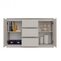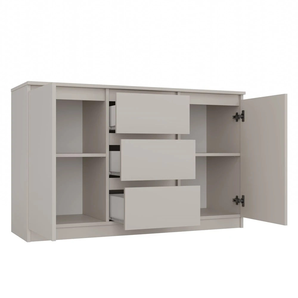 Funkční a prostorná komoda Malvína v nadčasovém elegantním designu ozdobí každý prostor vašeho domu či bytu. Pohodlná bezúchytková čela zásuvek a dvířka podtrhnou moderní charakter interiéru. Komoda je vyrobená z kvalitního 16 mm lamina, hrany jsou zakončené vysoce odolným ABS materiálem.