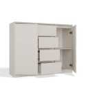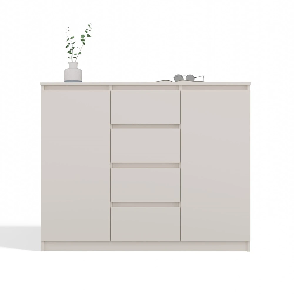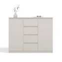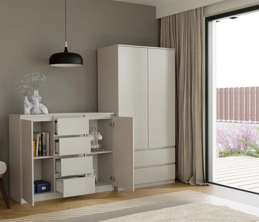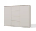 Nadčasová komoda Malvína v minimalistickém designu nabízí díky svému provedení dostatek úložného prostoru a univerzální použití v kterékoliv místnosti vašeho bytu či domu. Bezúchytková čela zásuvek a dvířek zajistí pohodlné používání a dokreslí moderní a útulný charakter vašeho interiéru. Komoda je vyrobena ze snadno udržovatelného lamina, hrany jsou zakončené vysoce odolným ABS materiálem.