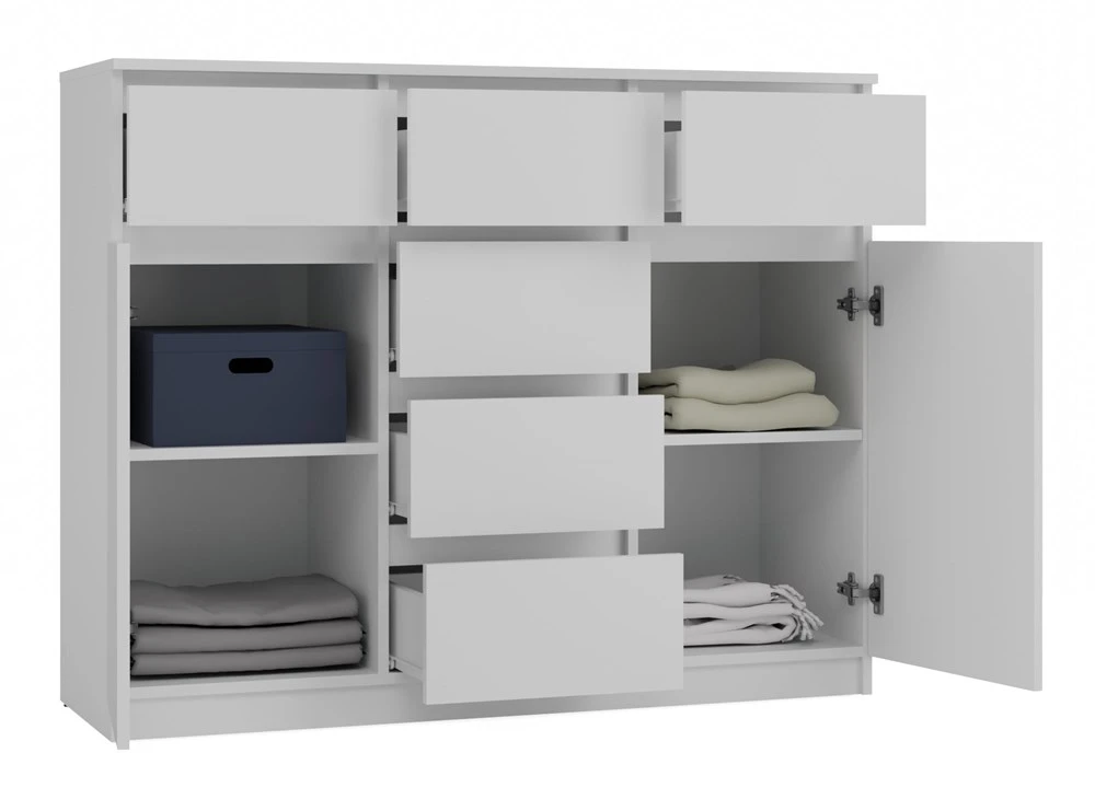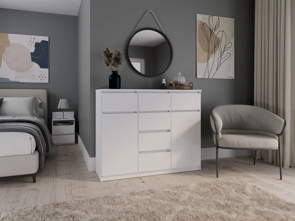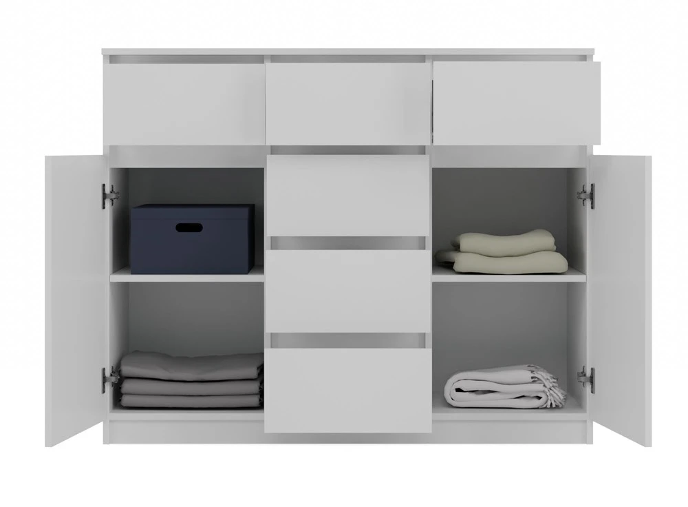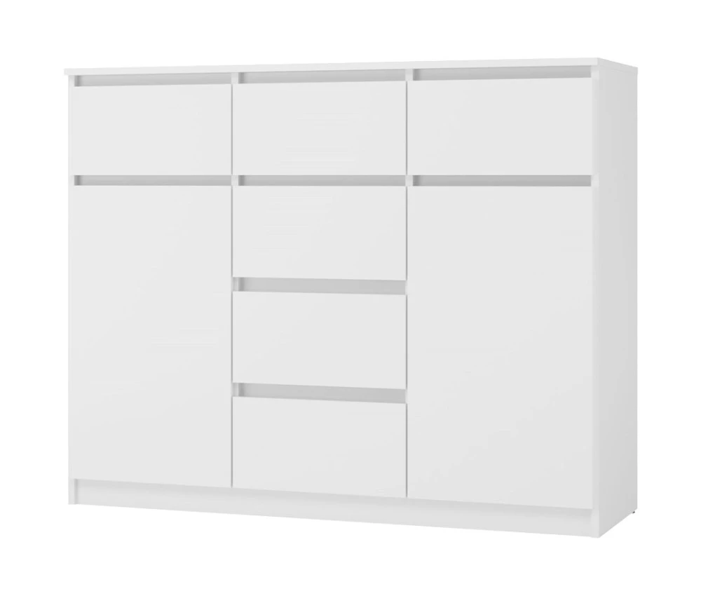 Nadčasová komoda Malvína v minimalistickém designu nabízí díky svému provedení dostatek úložného prostoru a univerzální použití v kterékoliv místnosti vašeho bytu či domu. Bezúchytková čela zásuvek a dvířek zajistí pohodlné používání a dokreslí moderní a útulný charakter vašeho interiéru. Komoda je vyrobena ze snadno udržovatelného lamina, hrany jsou zakončené vysoce odolným ABS materiálem.