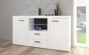 Komoda Rizo je nejen skvělým doplňkem k bytové stěně Rizo. Stejně výborně poslouží jako samostatný kus nábytku. Komoda má univerzální využití a nabízí dostatek úložného prostoru. Komoda je vyrobena z odolného a stálobarevného lamina. Komoda je dodávaná v demontu. Součástí balení je schematický montážní návod, včetně všech potřebných spojovacích prvků. Vyobrazené doplňky, LED osvětlení a dekorace nejsou v ceně.