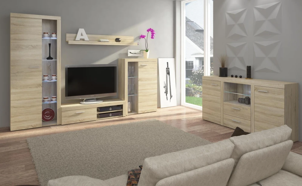 Komoda Rizo je nejen skvělým doplňkem k bytové stěně Rizo. Stejně výborně poslouží jako samostatný kus nábytku. Komoda má univerzální využití a nabízí dostatek úložného prostoru. Komoda je vyrobena z odolného a stálobarevného lamina. Komoda je dodávaná v demontu. Součástí balení je schematický montážní návod, včetně všech potřebných spojovacích prvků. Vyobrazené doplňky, LED osvětlení a dekorace nejsou v ceně.