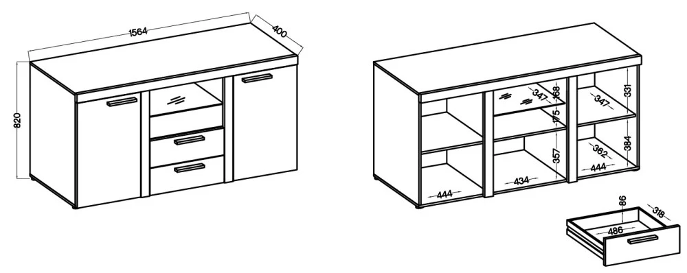 rozměry: šířka: 156,4 cm, hloubka: 40,5 cm, výška: 82 cm