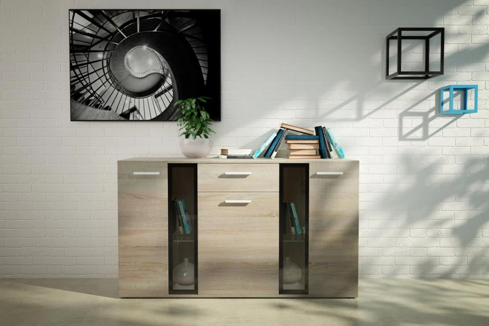 Komoda Silos je nejen skvělým doplňkem k bytové stěně Silos. Stejně výborně poslouží jako samostatný kus nábytku. Komoda má univerzální využití a nabízí dostatek úložného prostoru. Komoda je vyrobena z odolného a stálobarevného lamina. Komoda je dodávaná v demontu. Součástí balení je schématický montážní návod, včetně všech potřebných spojovacích prvků. Vyobrazené doplňky a dekorace nejsou v ceně.