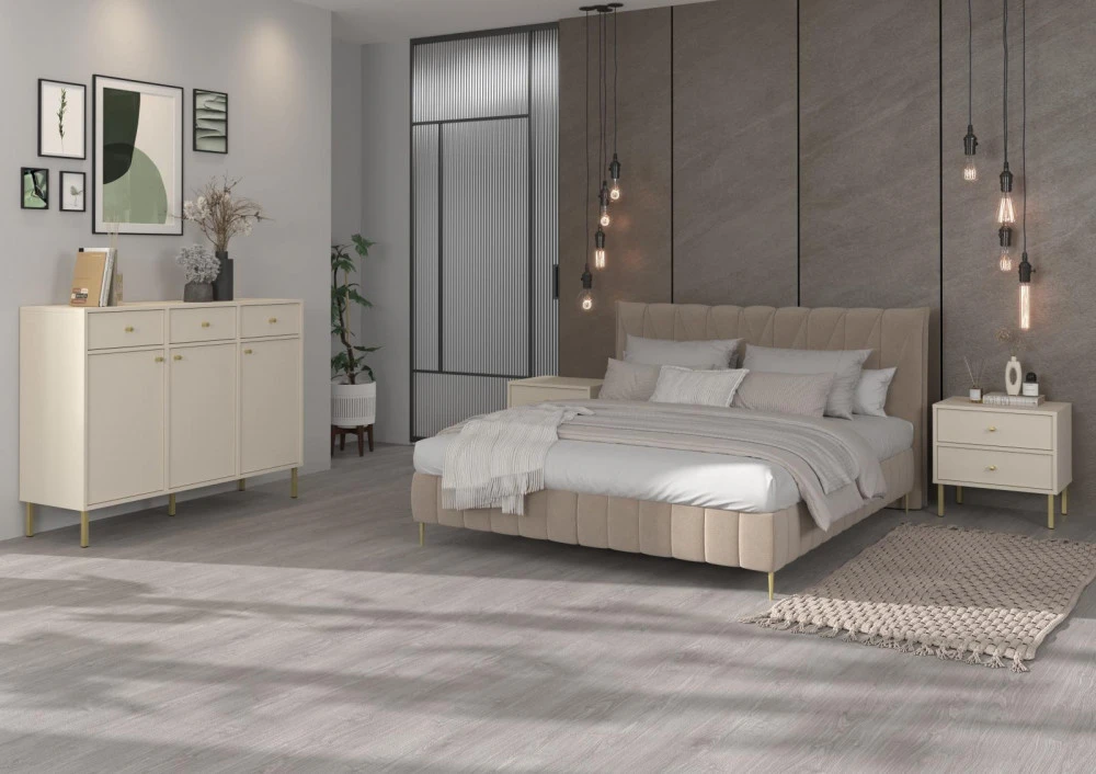 Série Tomila nabízí noční, TV i konferenční stolky, vitríny a komody v široké škále tvarů, barev a typů noh.