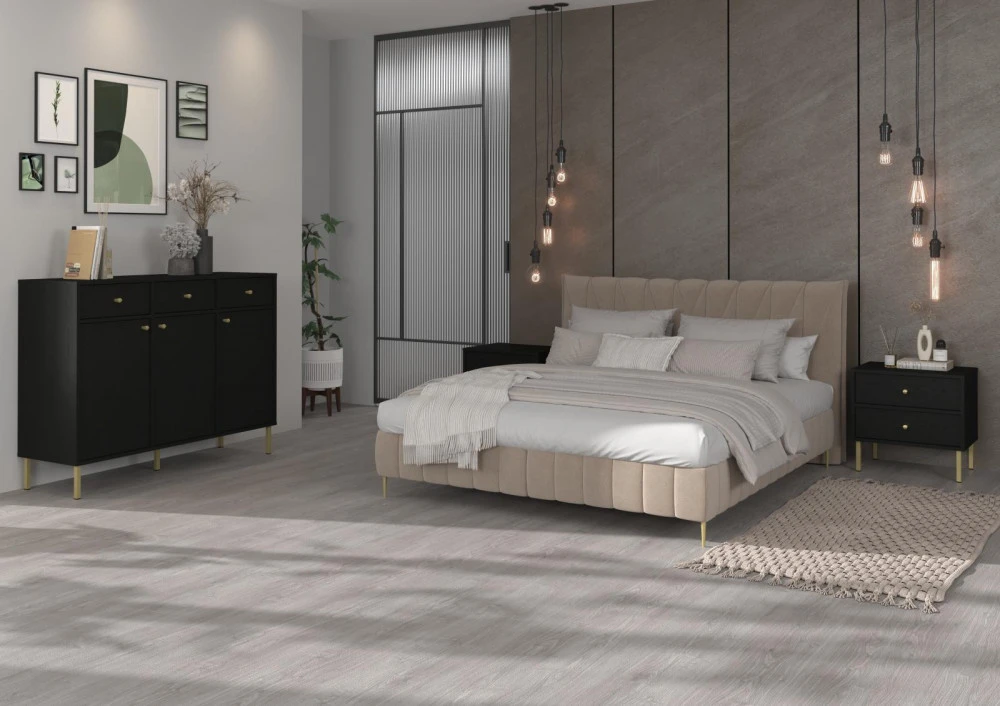 Série Tomila nabízí noční, TV i konferenční stolky, vitríny a komody v široké škále tvarů, barev a typů noh.