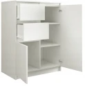 Funkční a prostorná komoda Topa v nadčasovém elegantním designu ozdobí každý prostor vašeho domu či bytu. Pohodlná bezúchytková čela zásuvek a dvířka podtrhnou moderní charakter interiéru. Komoda je vyrobená z kvalitního 16 mm lamina, hrany jsou zakončené vysoce odolným ABS materiálem.