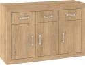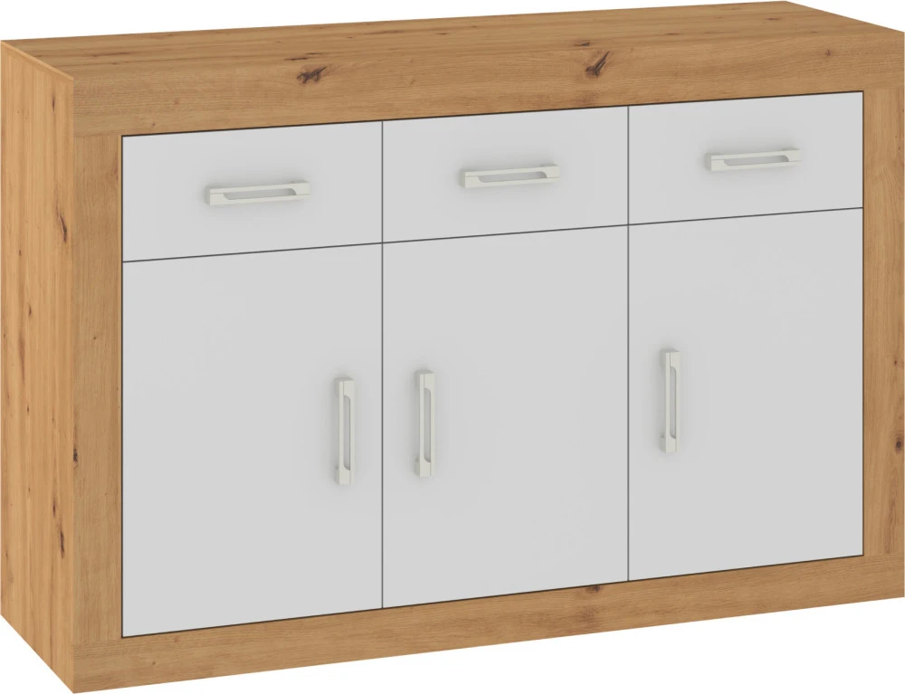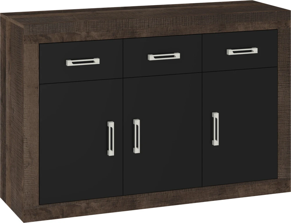 Komoda Verin je vyrobena z lamina o síle 16 mm. Originální doplněk ke stejnojmenné obývací sestavě. Komoda se třemi dvířky a třemi zásuvkami.