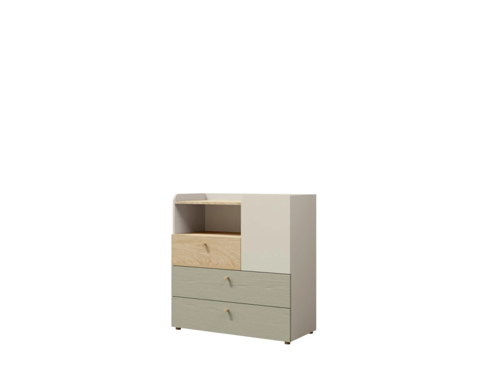 Komoda Yuva R10 je vyrobena z kvalitního lamina v krásném dekoru přírodního dubu, eukalyptu a šedobéžové barvy. Lamino je odolné a jistě oceníte jeho snadnou údržbu. Komoda je dodávaná v demontu. Součástí balení je montážní návod včetně všech spojovacích prvků.