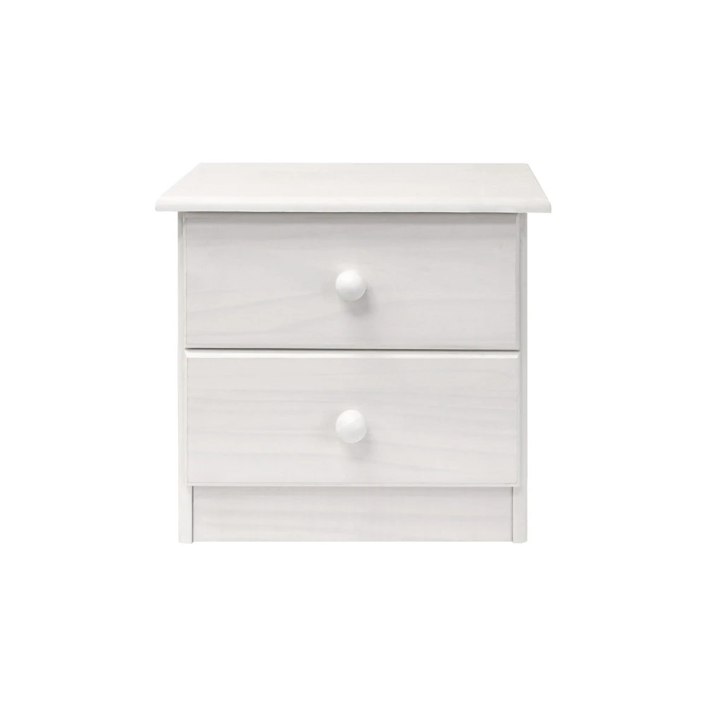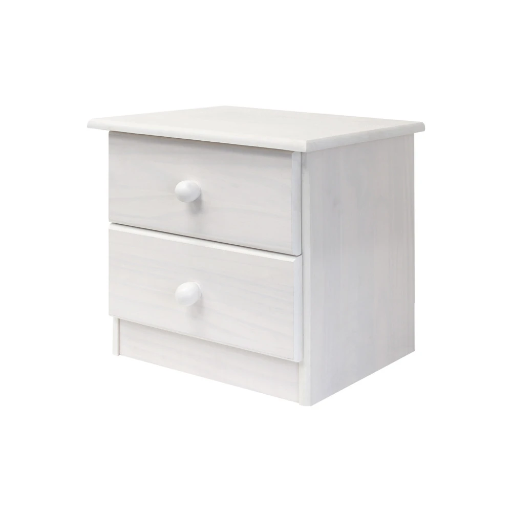 materiál masiv borovice, barevné provedení bílý lak 2 zásuvky s kovovými pojezdy, hloubka zásuvky 27,5 cm