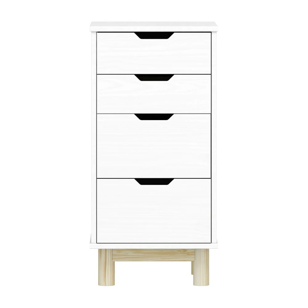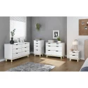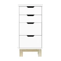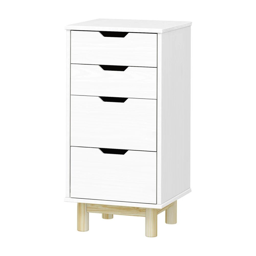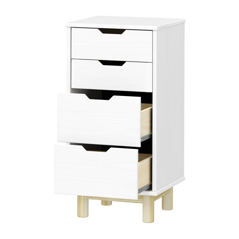 materiál masiv borovice, barevné provedení bílý lak 2 menší a 2 větší zásuvky s kovovými pojezdy