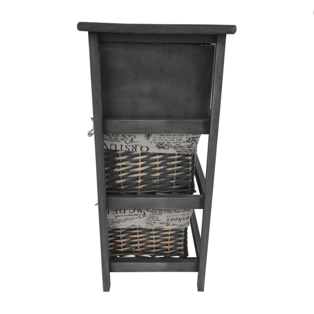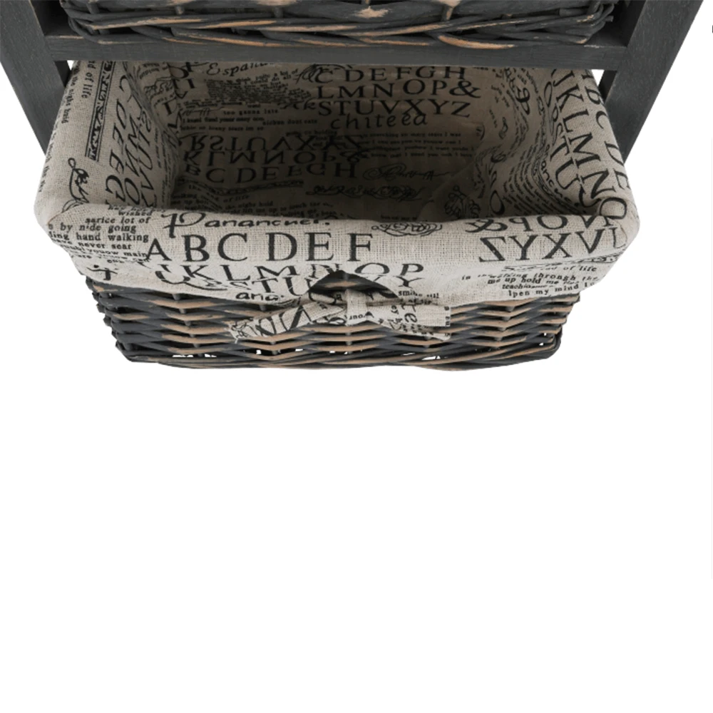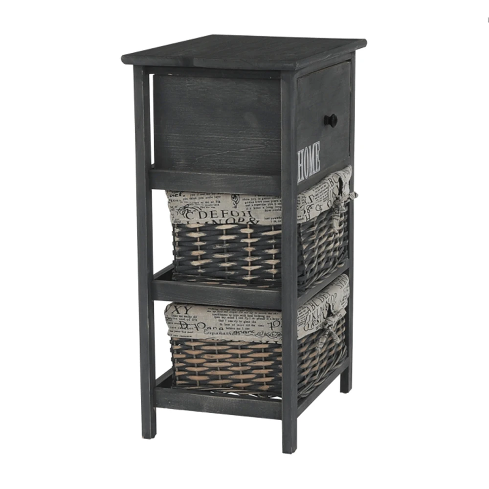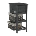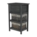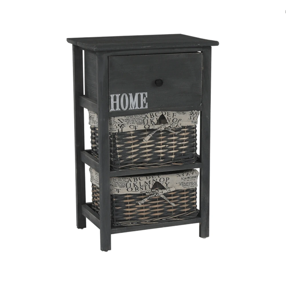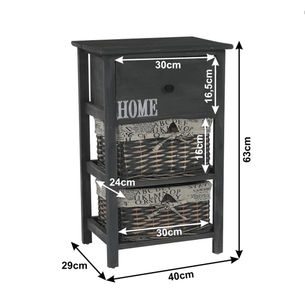 komoda s pevným rámem, s funkční zásuvkou a 2 proutěnými košíky, materiál: dřevo / proutí, barevné provedení: tmavě hnědá, ŠxVxH: 40x63x29 cm.