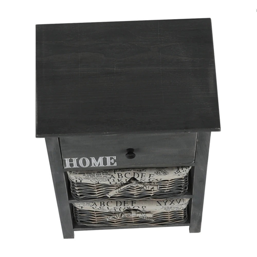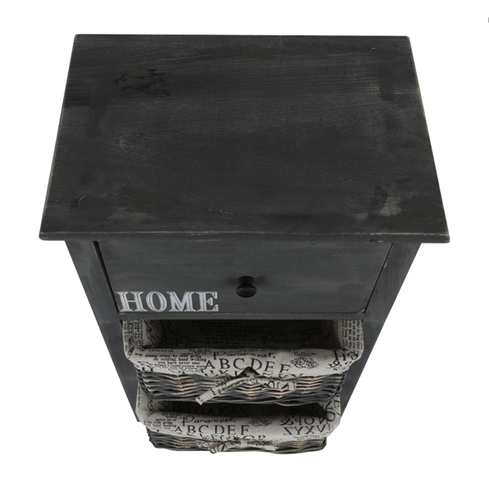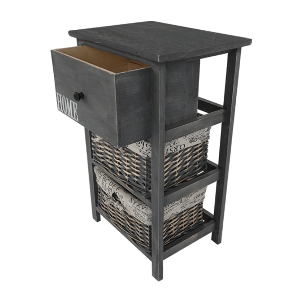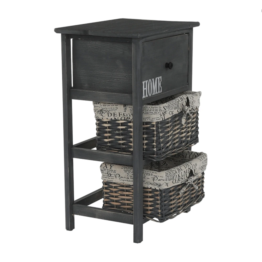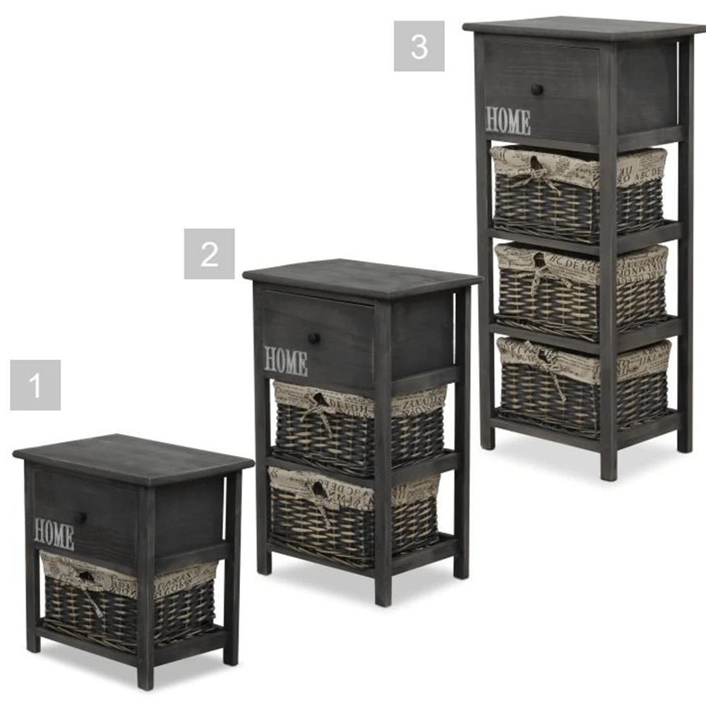 komoda s pevným rámem, s funkční zásuvkou a 2 proutěnými košíky, materiál: dřevo / proutí, barevné provedení: tmavě hnědá, ŠxVxH: 40x63x29 cm.