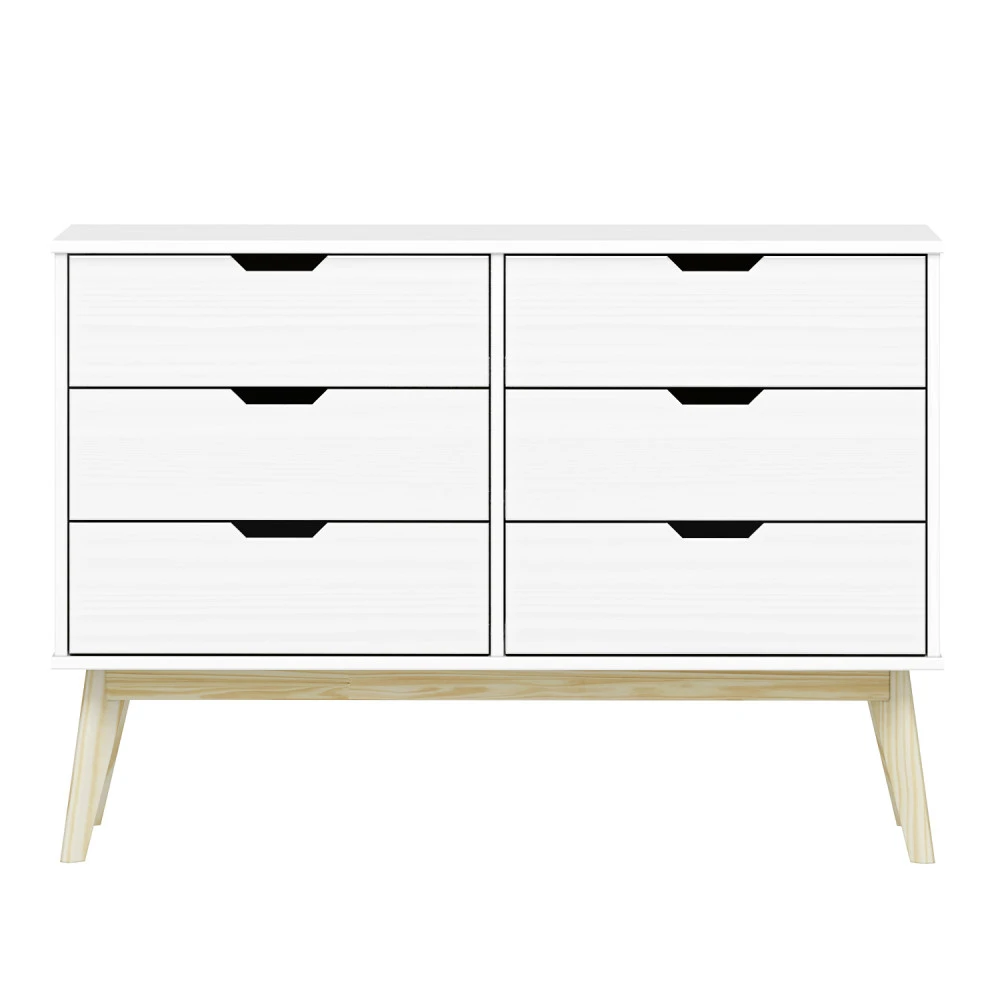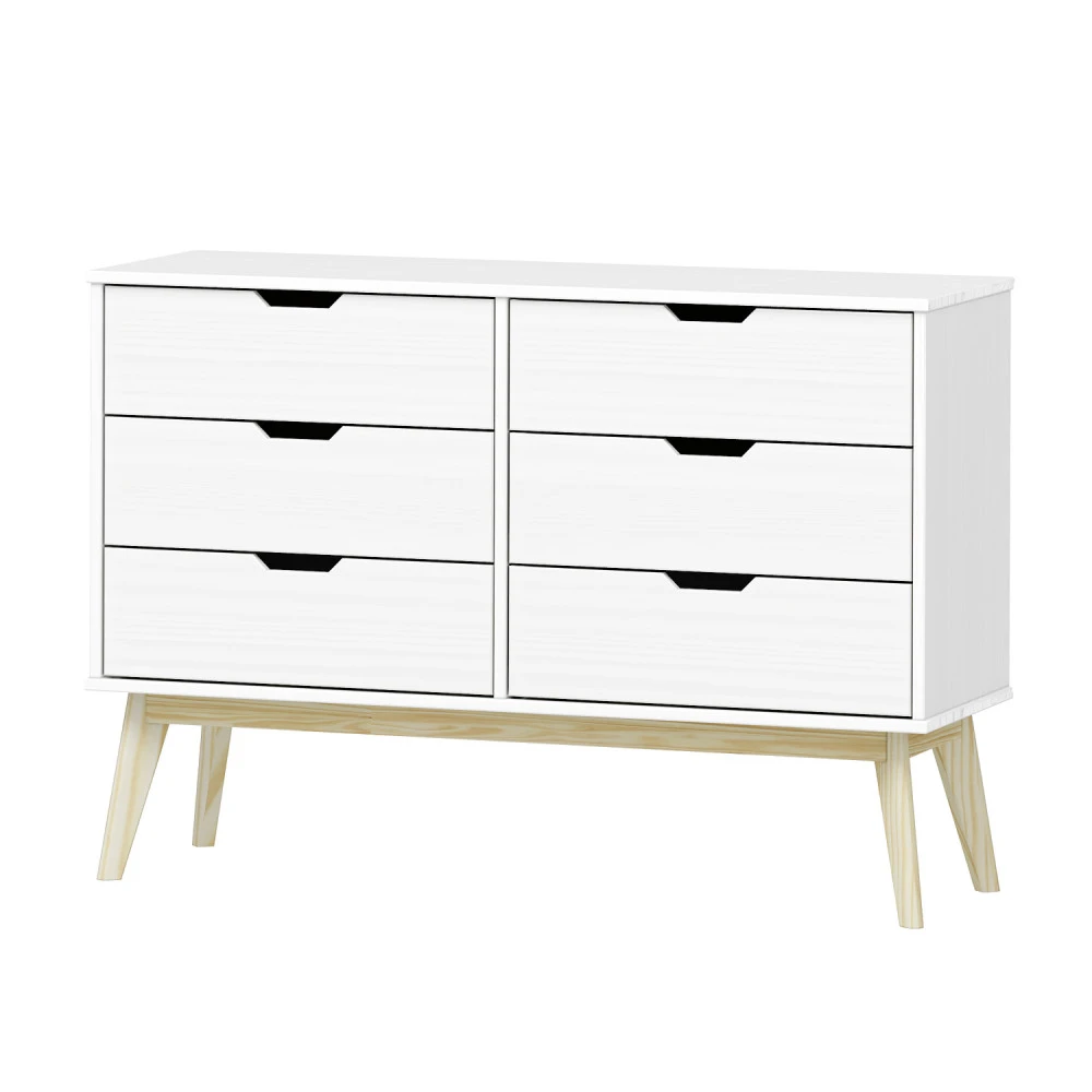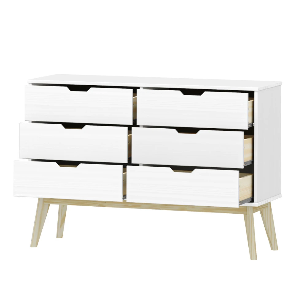 materiál masiv borovice, barevné provedení bílý lak 6 zásuvek s kovovými pojezdy