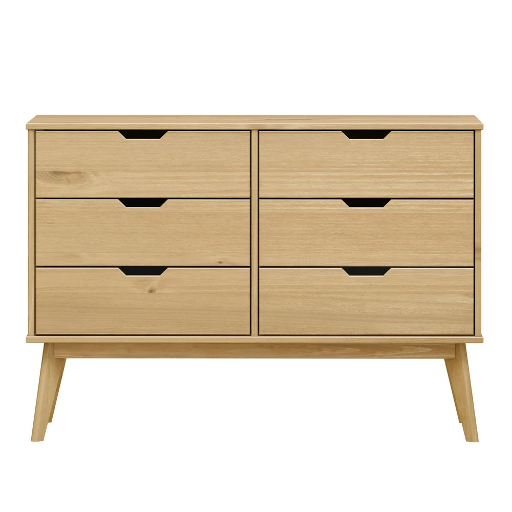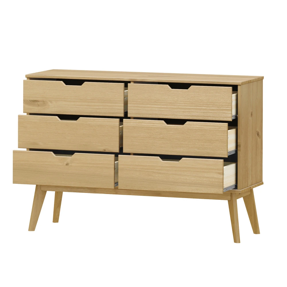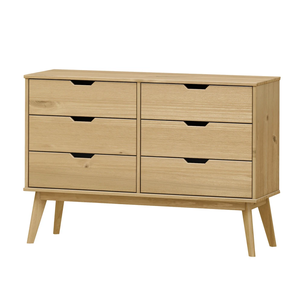 materiál masiv borovice voskovaná v medovém odstínu 6 zásuvek s kovovými pojezdy