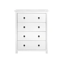 materiál masiv borovice, barevné provedení bílý lak kovové úchytky čtyři zásuvky s kovovými pojezdy