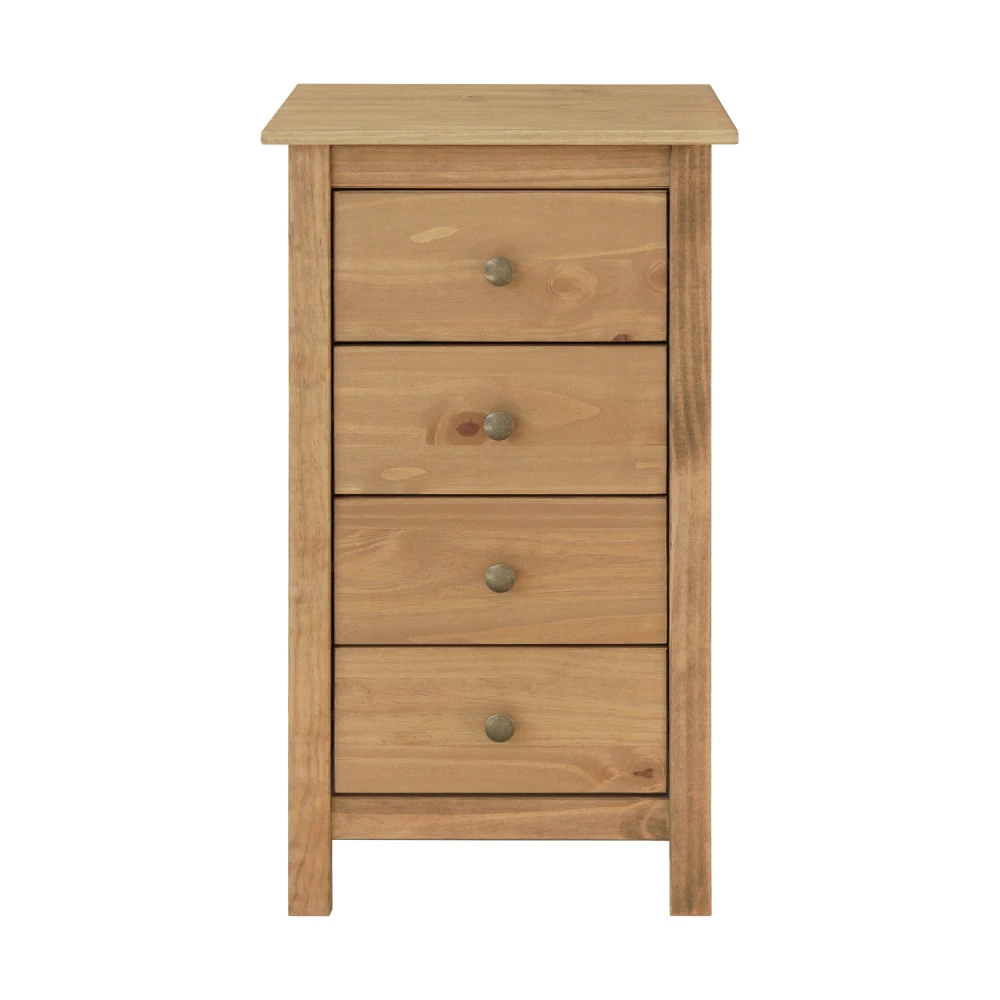 materiál masiv borovice voskovaná v medovém odstínu kovové úchytky v barevném provedení mosaz 4 zásuvky s kovovými pojezdy