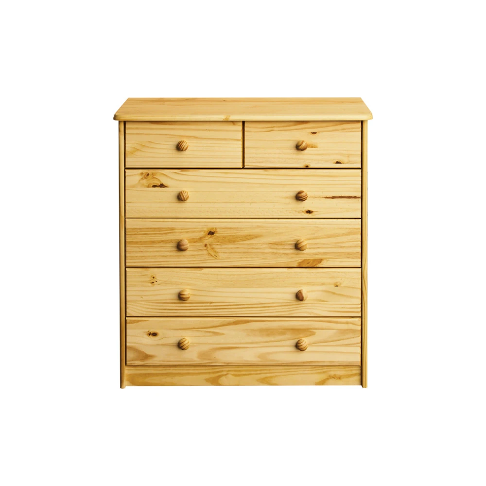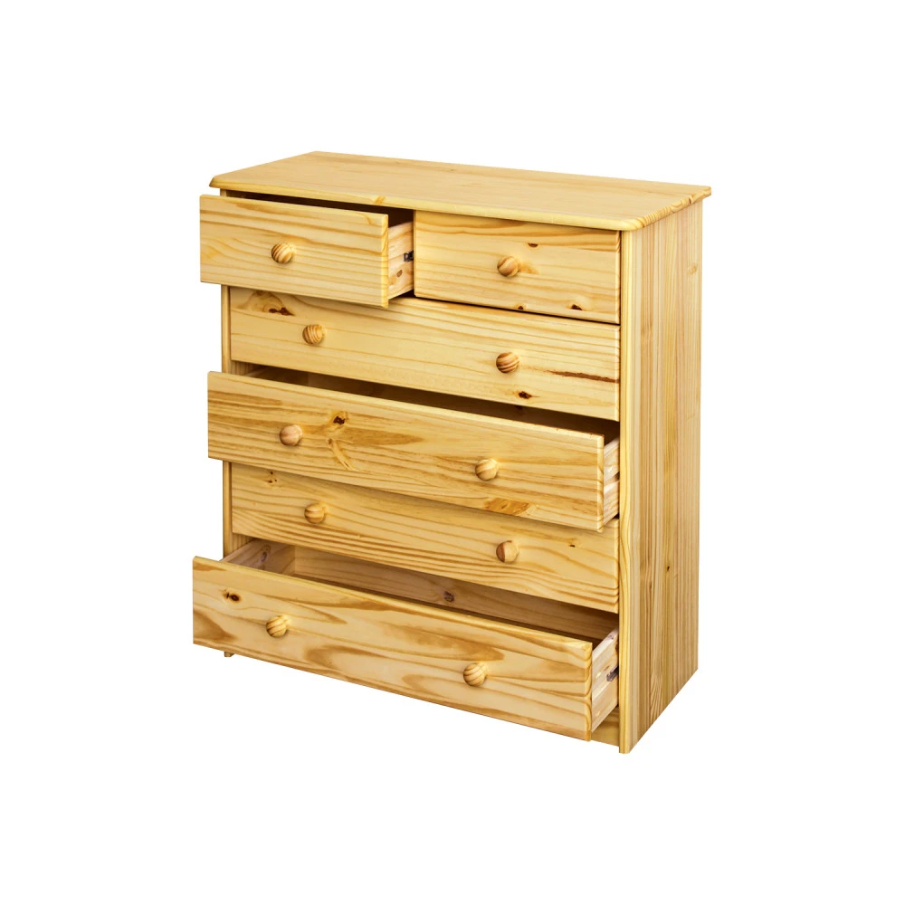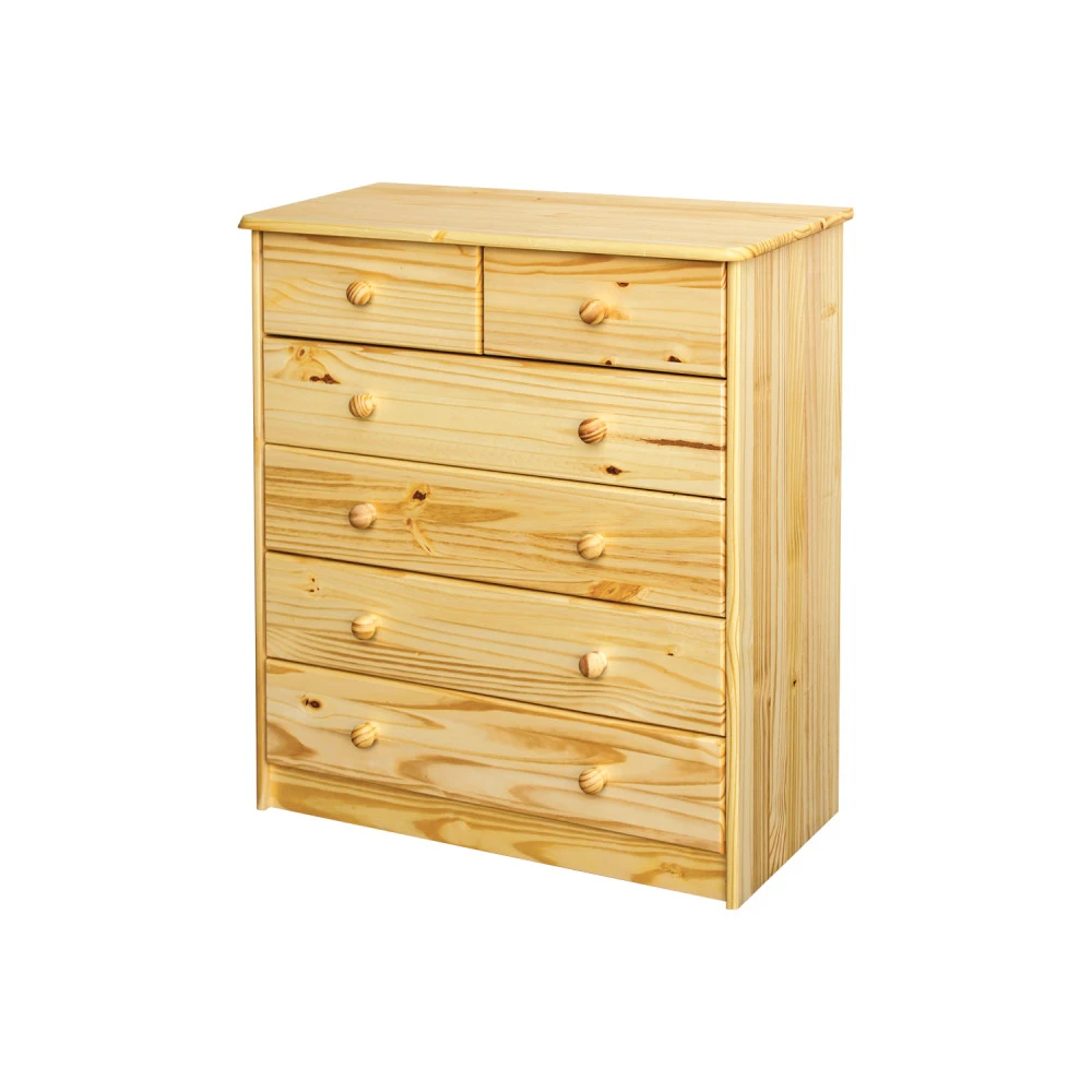 materiál masiv borovice, lakované provedení 2 úzké a 4 široké zásuvky s kovovými pojezdy