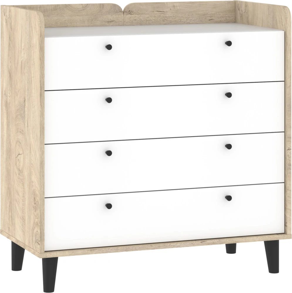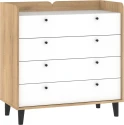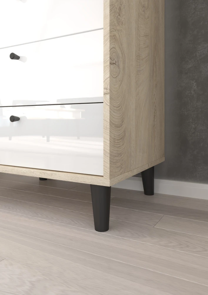 Komoda Dolce 07 disponuje 4 zásuvkami. Nožky jsou vysoké 12 cm.