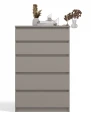 Nadčasová komoda Malvína v minimalistickém designu nabízí díky svému provedení dostatek úložného prostoru a univerzální použití v kterékoliv místnosti vašeho bytu či domu. Bezúchytková čela zásuvek zajistí pohodlné používání a dokreslí moderní a útulný charakter vašeho interiéru. Komoda je vyrobena ze snadno udržovatelného lamina, hrany jsou zakončené vysoce odolným ABS materiálem.