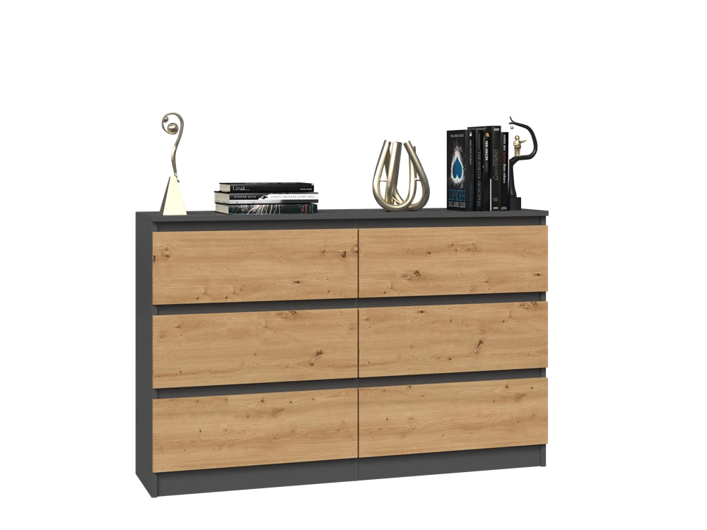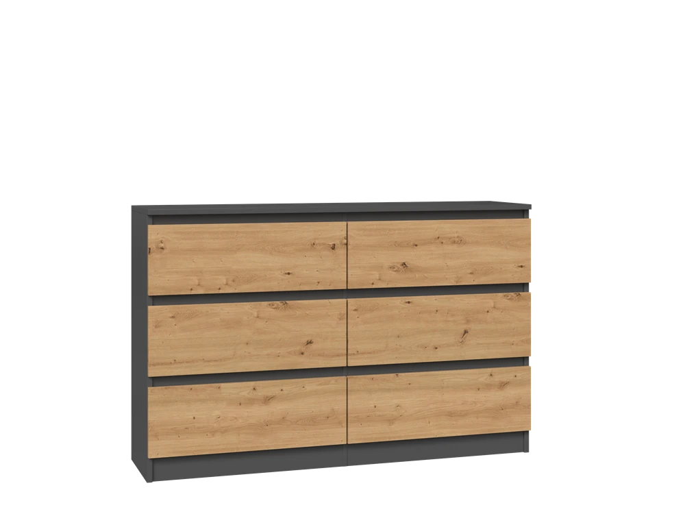 Nadčasová komoda Malvína v minimalistickém designu nabízí díky svému provedení dostatek úložného prostoru a univerzální použití v kterékoliv místnosti vašeho bytu či domu. Bezúchytková čela zásuvek zajistí pohodlné používání a dokreslí moderní a útulný charakter vašeho interiéru. Komoda je vyrobena ze snadno udržovatelného lamina, hrany jsou zakončené vysoce odolným ABS materiálem.