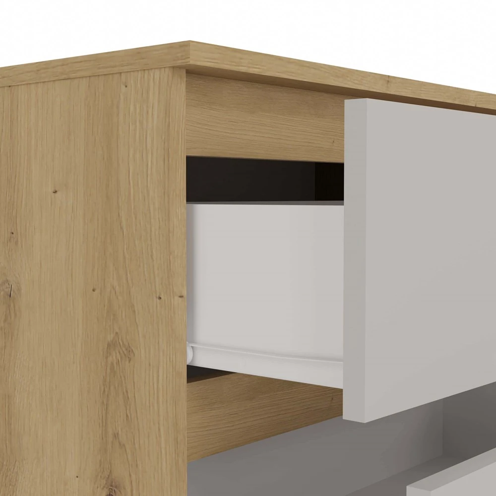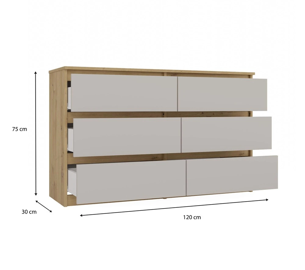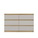 Nadčasová komoda Malvína v minimalistickém designu nabízí díky svému provedení dostatek úložného prostoru a univerzální použití v kterékoliv místnosti vašeho bytu či domu. Bezúchytková čela zásuvek zajistí pohodlné používání a dokreslí moderní a útulný charakter vašeho interiéru. Komoda je vyrobena ze snadno udržovatelného lamina, hrany jsou zakončené vysoce odolným ABS materiálem.