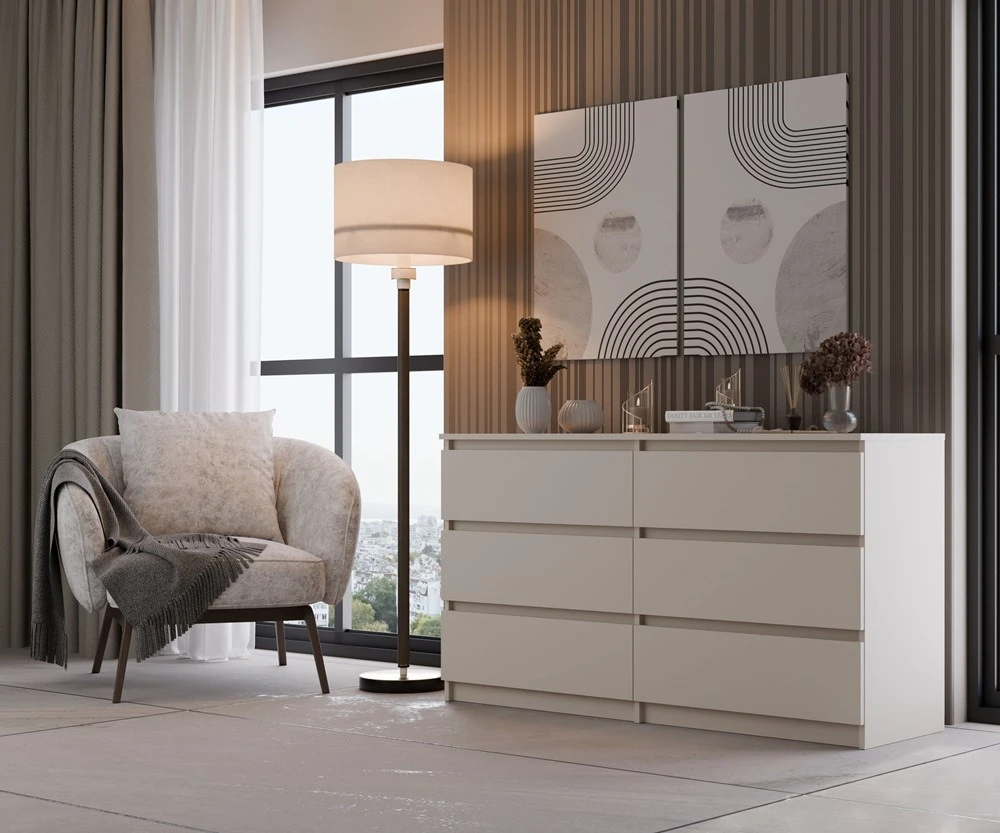Nadčasová komoda Malvína v minimalistickém designu nabízí díky svému provedení dostatek úložného prostoru a univerzální použití v kterékoliv místnosti vašeho bytu či domu. Bezúchytková čela zásuvek zajistí pohodlné používání a dokreslí moderní a útulný charakter vašeho interiéru. Komoda je vyrobena ze snadno udržovatelného lamina, hrany jsou zakončené vysoce odolným ABS materiálem.