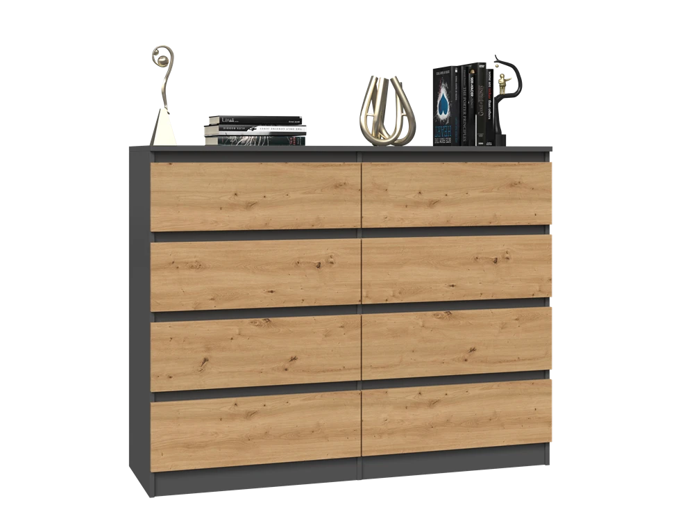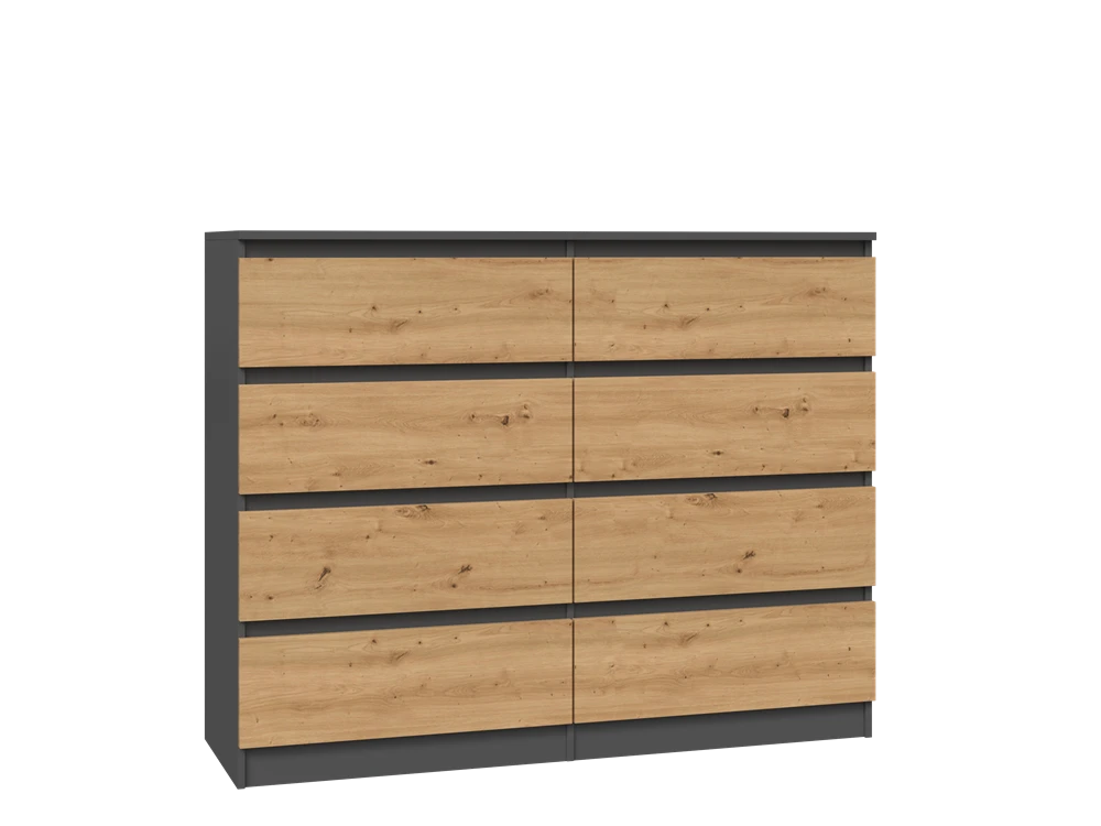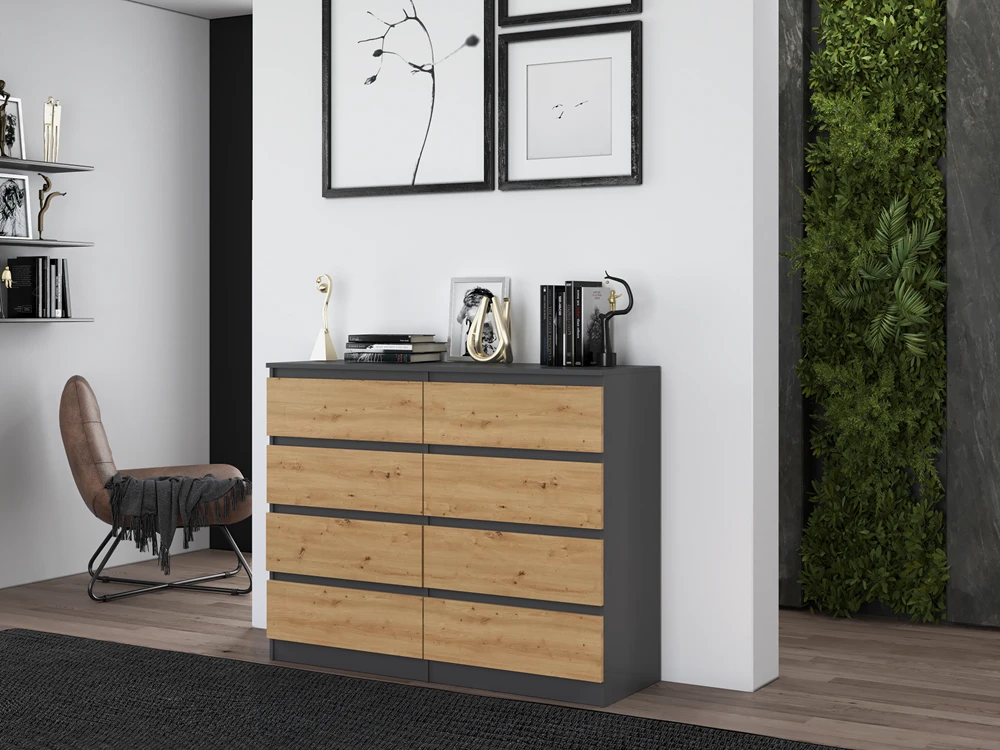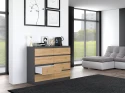 Nadčasová komoda Malvína v minimalistickém designu nabízí díky svému provedení dostatek úložného prostoru a univerzální použití v kterékoliv místnosti vašeho bytu či domu. Bezúchytková čela zásuvek zajistí pohodlné používání a dokreslí moderní a útulný charakter vašeho interiéru. Komoda je vyrobena ze snadno udržovatelného lamina, hrany jsou zakončené vysoce odolným ABS materiálem.