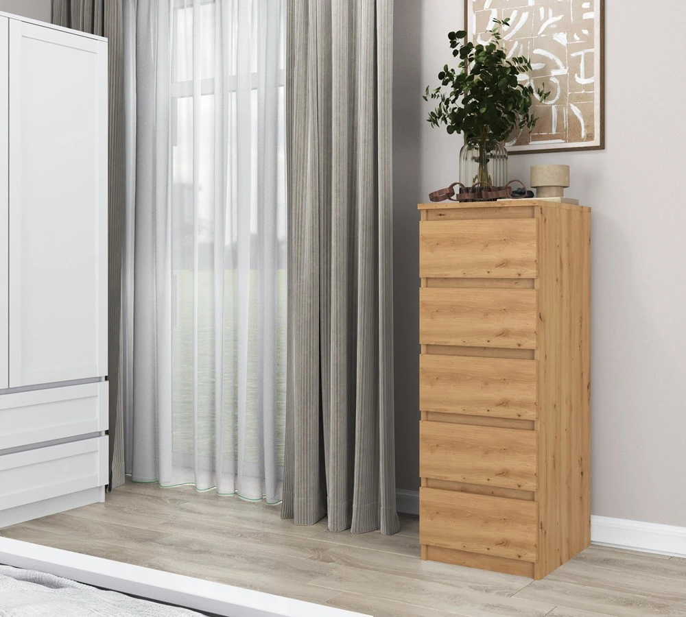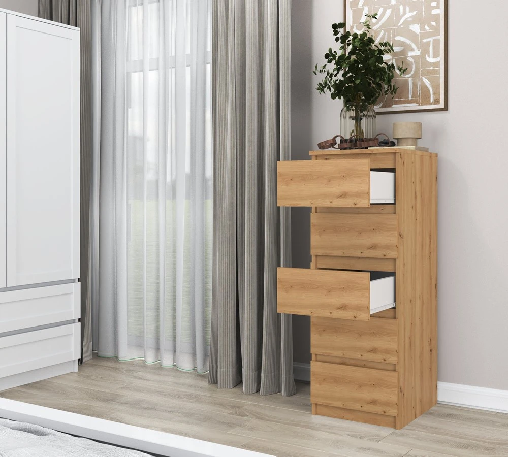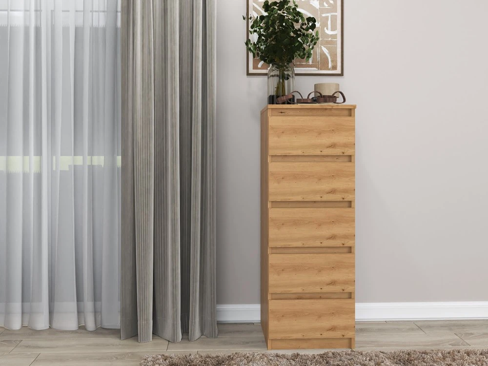 Nadčasová komoda Malvína v minimalistickém designu nabízí díky svému provedení dostatek úložného prostoru a univerzální použití v kterékoliv místnosti vašeho bytu či domu. Bezúchytková čela zásuvek zajistí pohodlné používání a dokreslí moderní a útulný charakter vašeho interiéru. Komoda je vyrobena ze snadno udržovatelného lamina, hrany jsou zakončené vysoce odolným ABS materiálem.